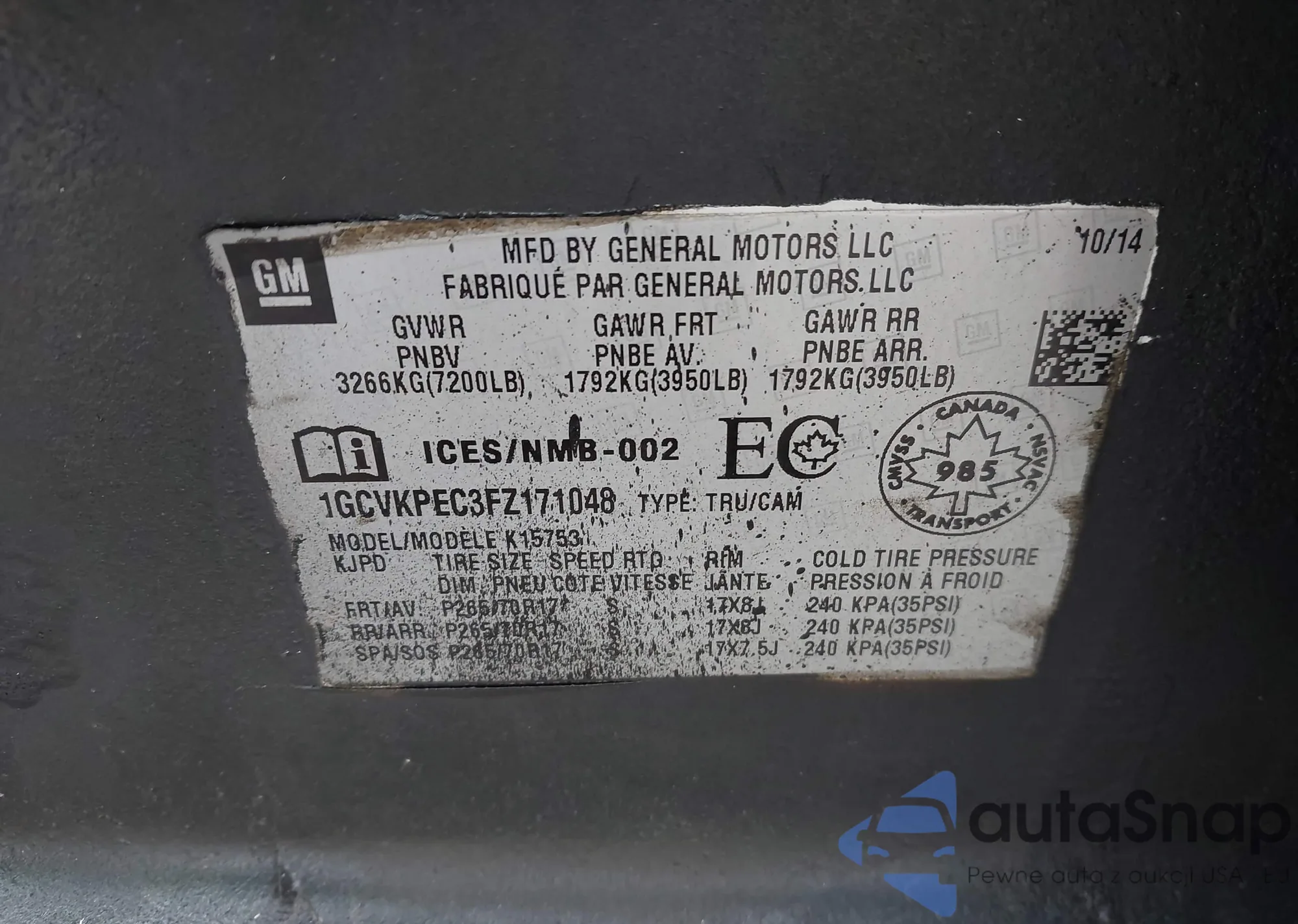 • VIN 1GCVKPEC3FZ171048
