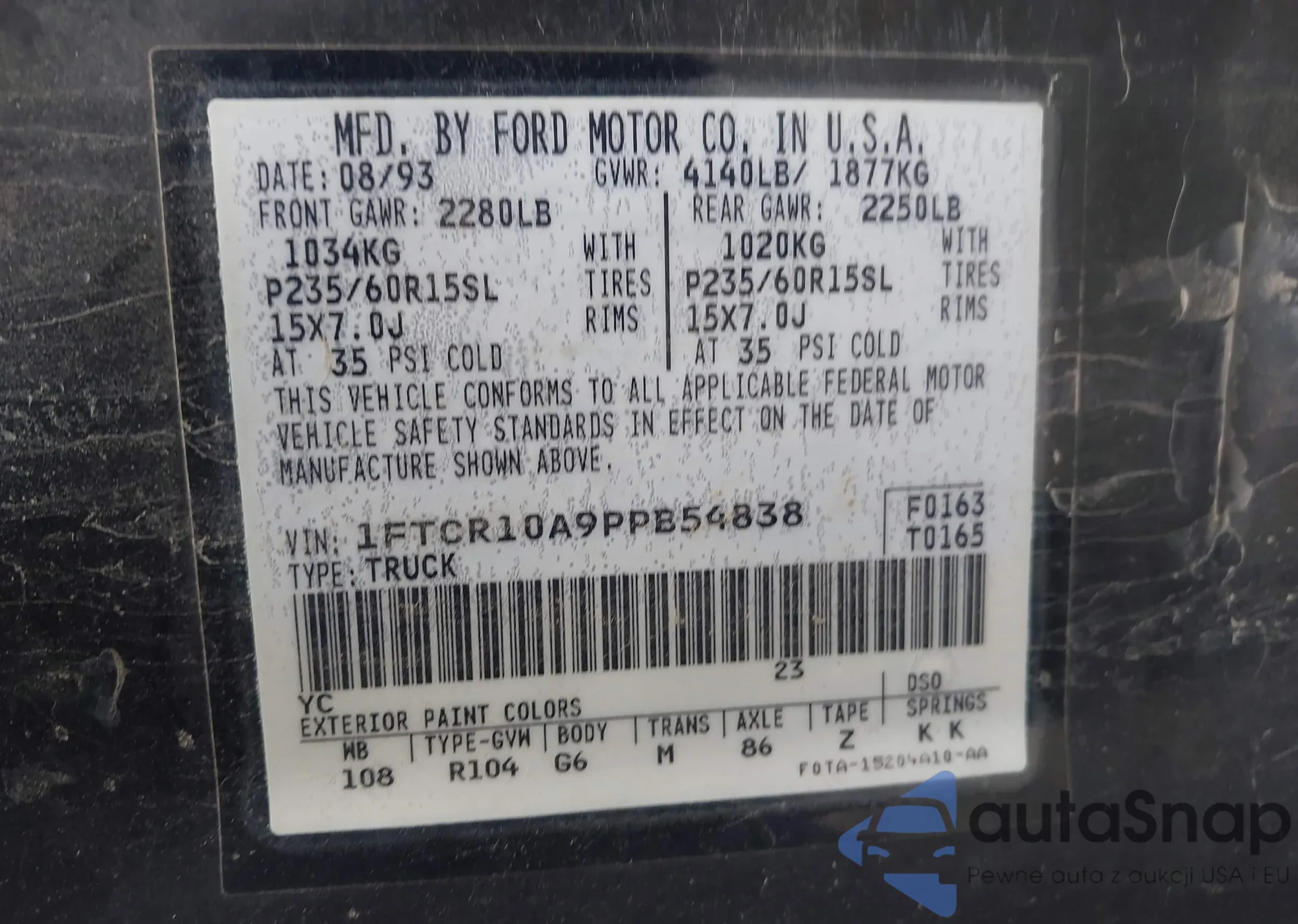 LOT: 43867954 VIN: 1FTCR10A9PPB54838
