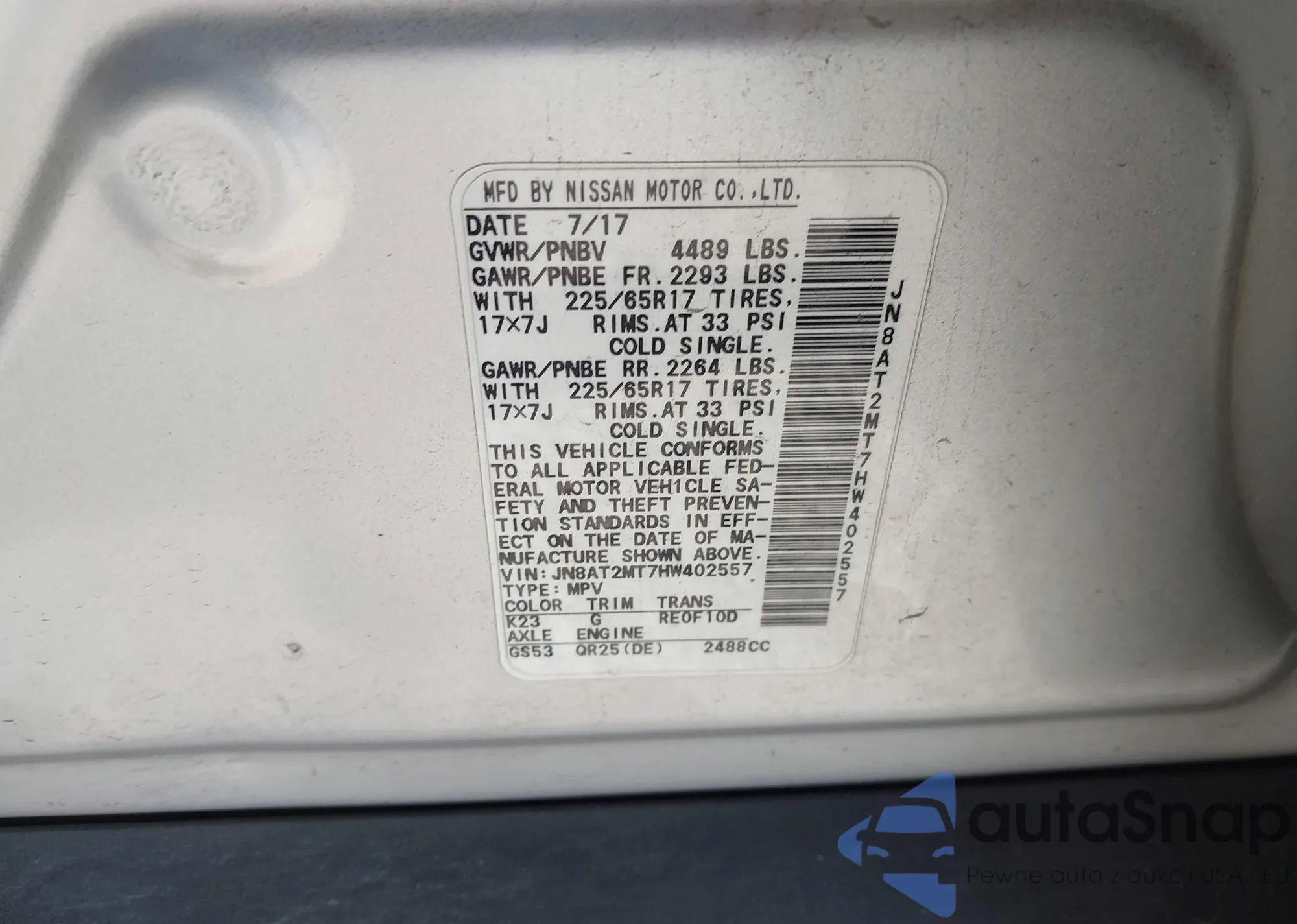 • VIN JN8AT2MT7HW402557