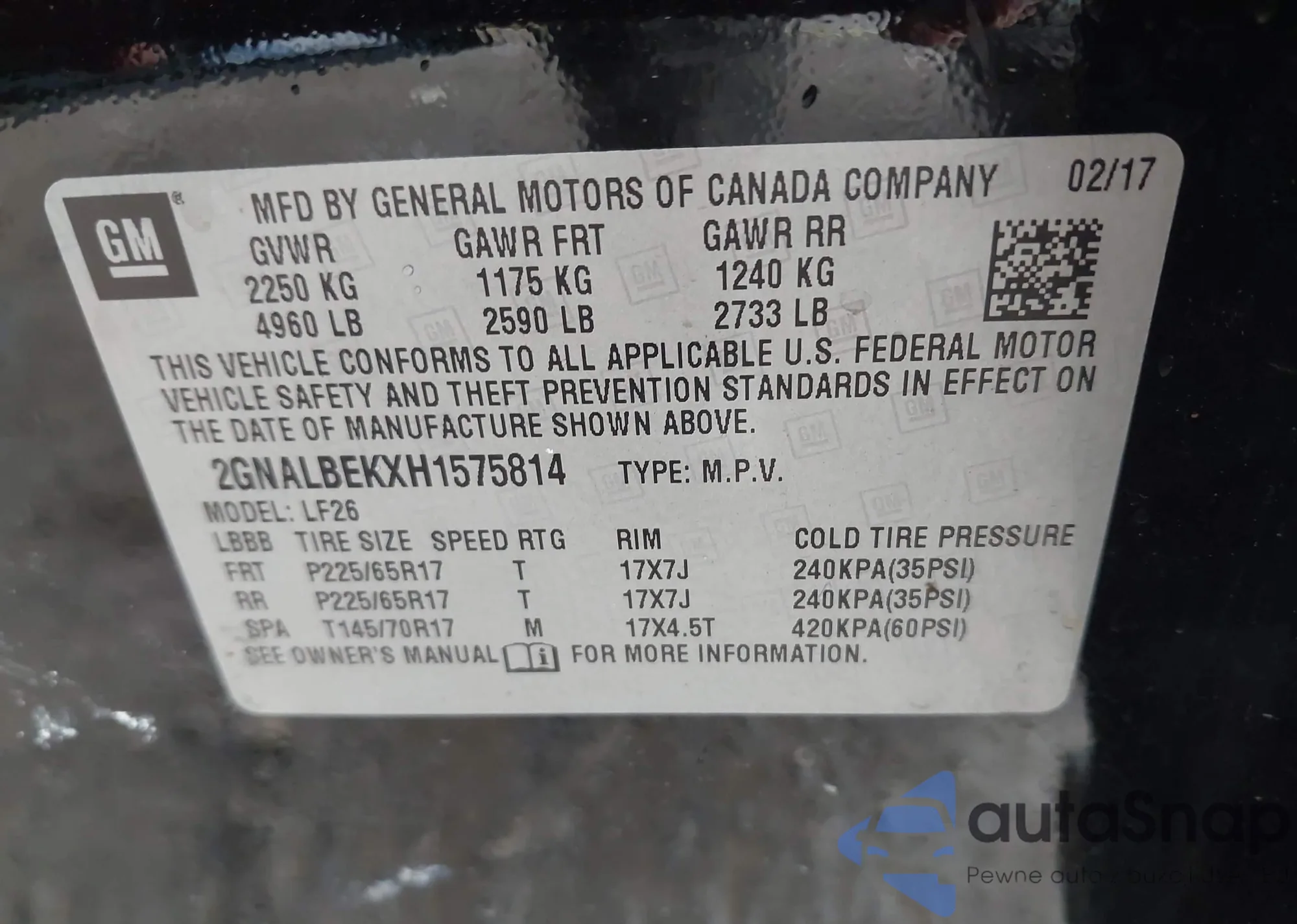 • VIN 2GNALBEKXH1575814