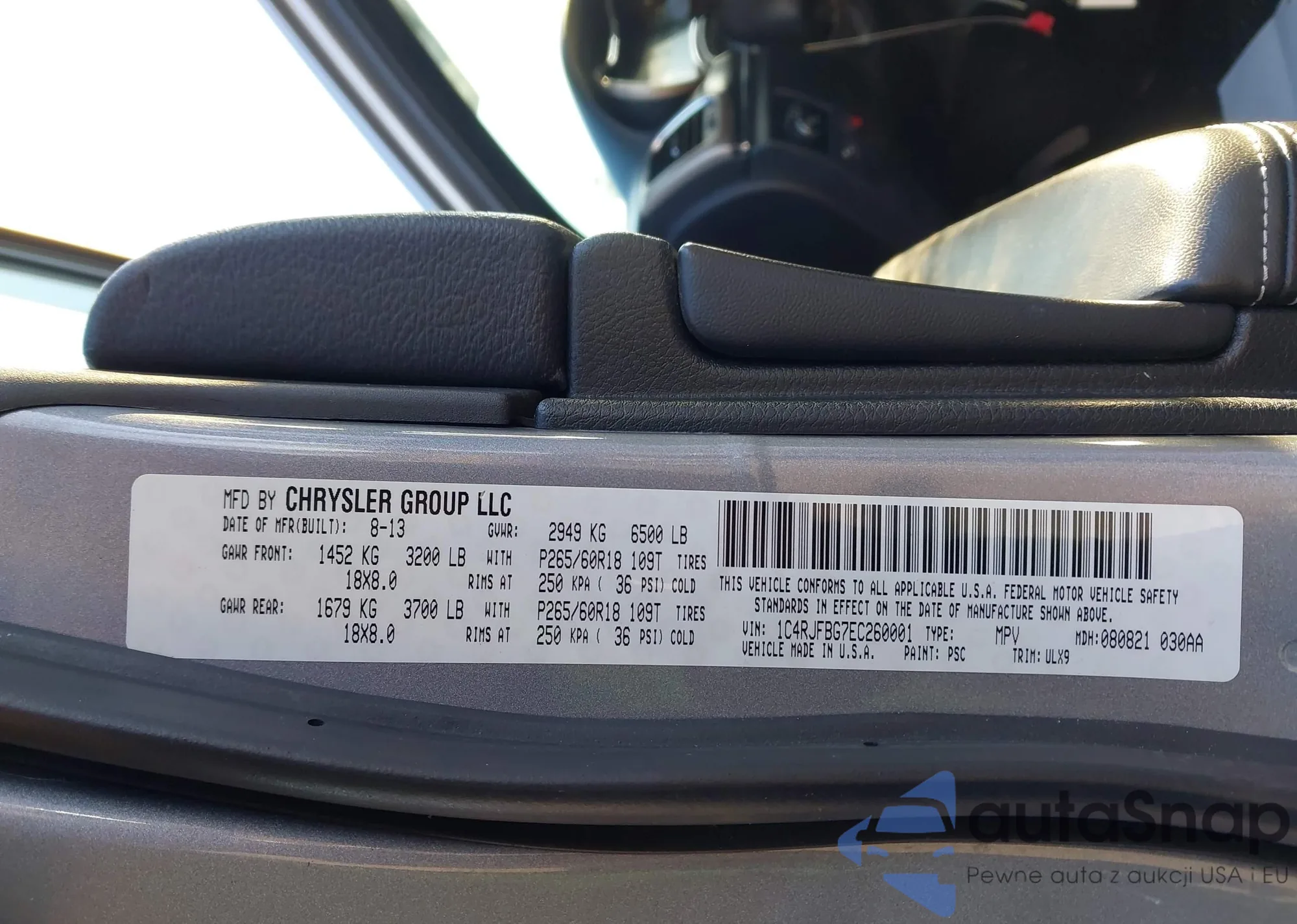 LOT: 43929301 VIN: 1C4RJFBG7EC260001
