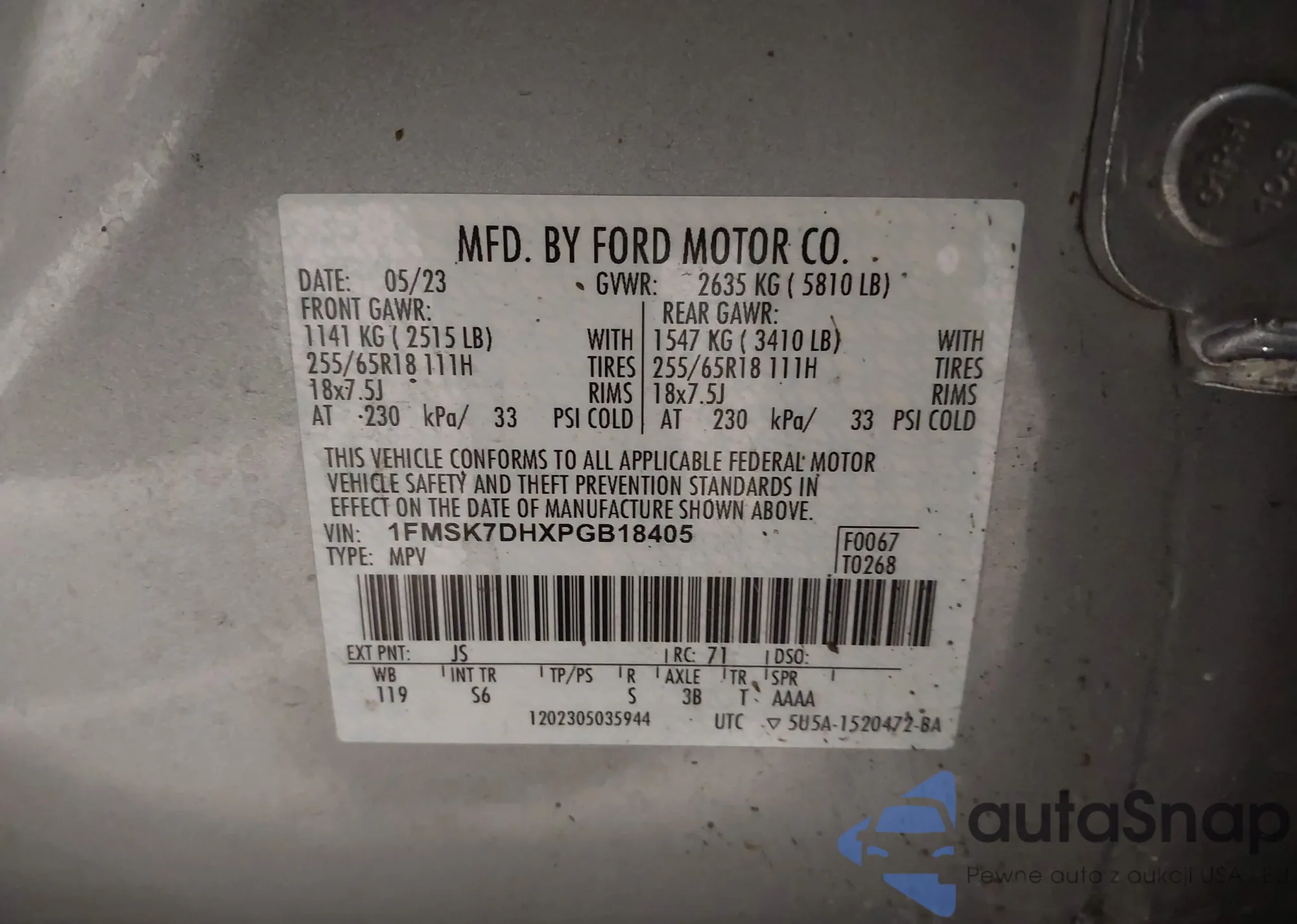 LOT: 44003717 VIN: 5FNYF3H50DB004897