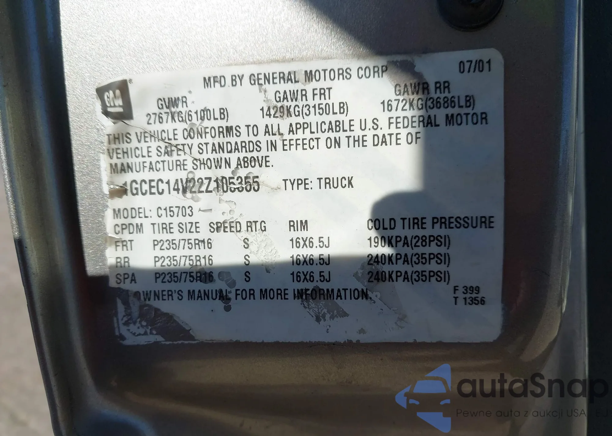 • VIN 1GCEC14V22Z105355