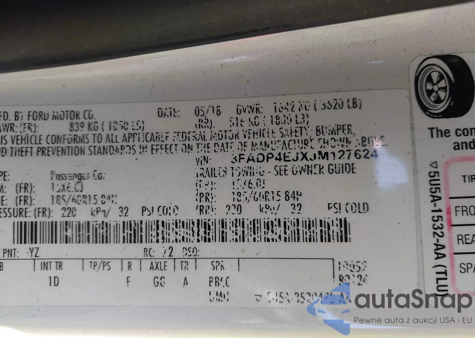 • VIN 3FADP4EJXJM127624