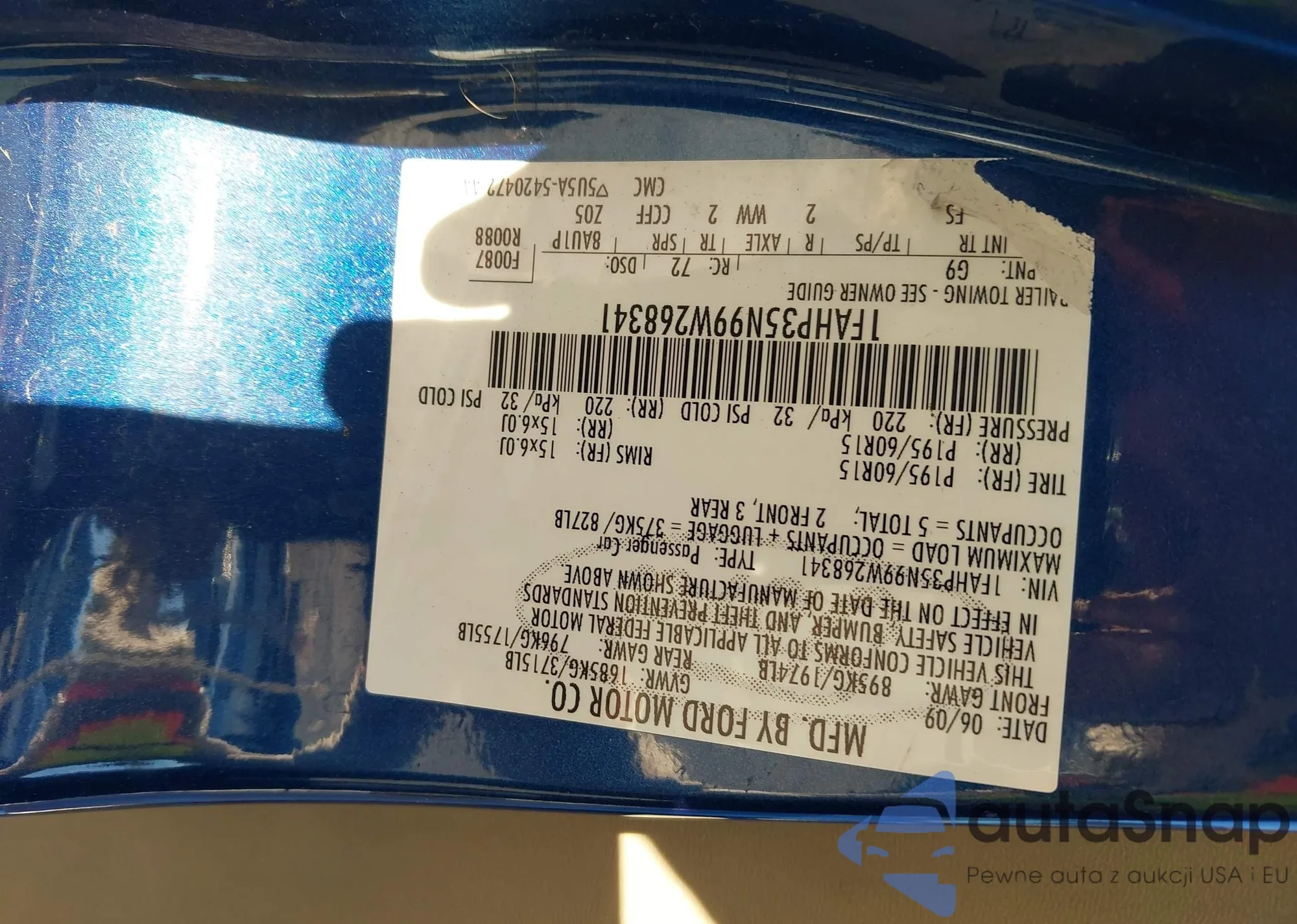 • VIN 1FAHP35N99W268341
