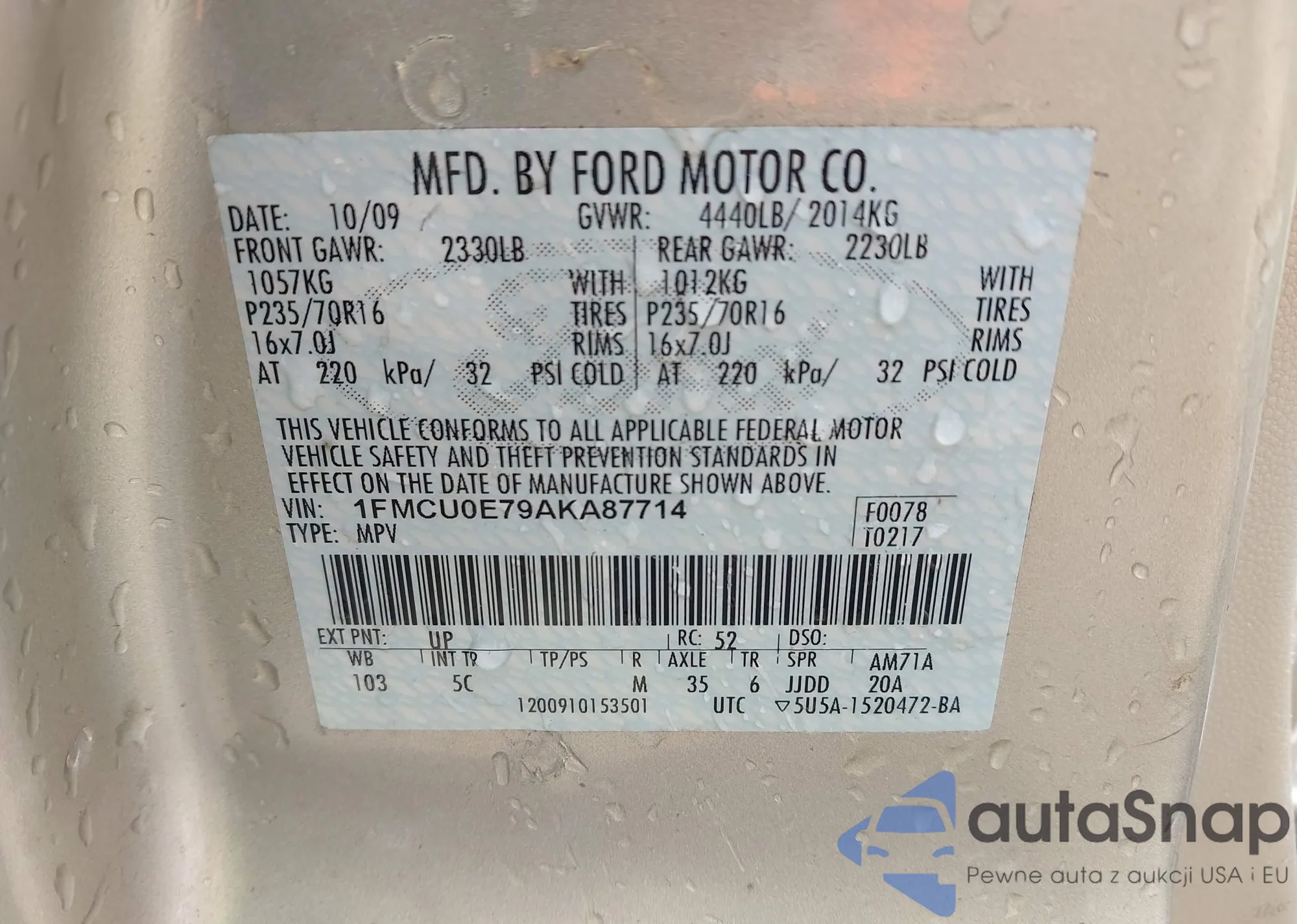 • VIN 1FMCU0E79AKA87714