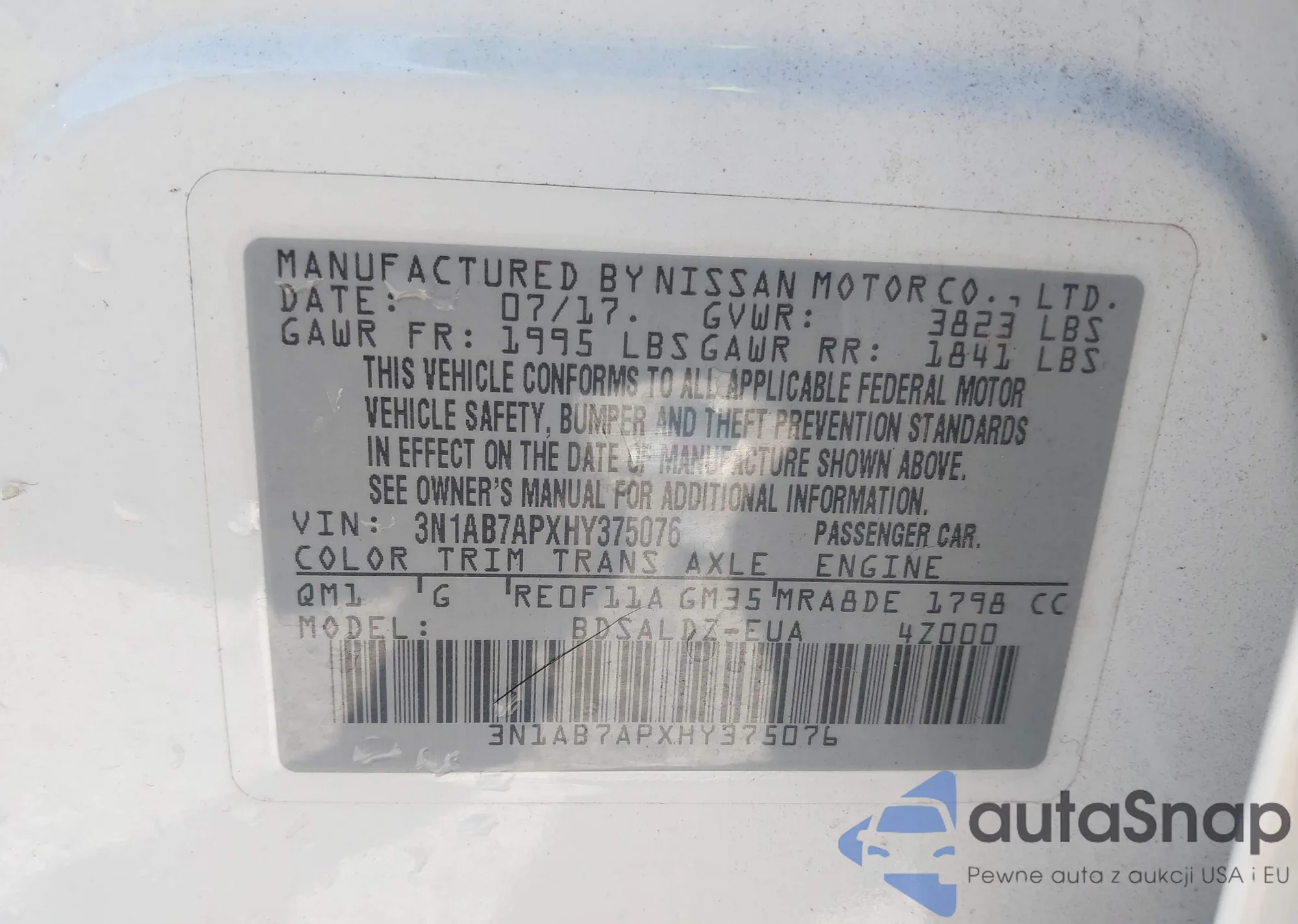 • VIN 3N1AB7APXHY375076