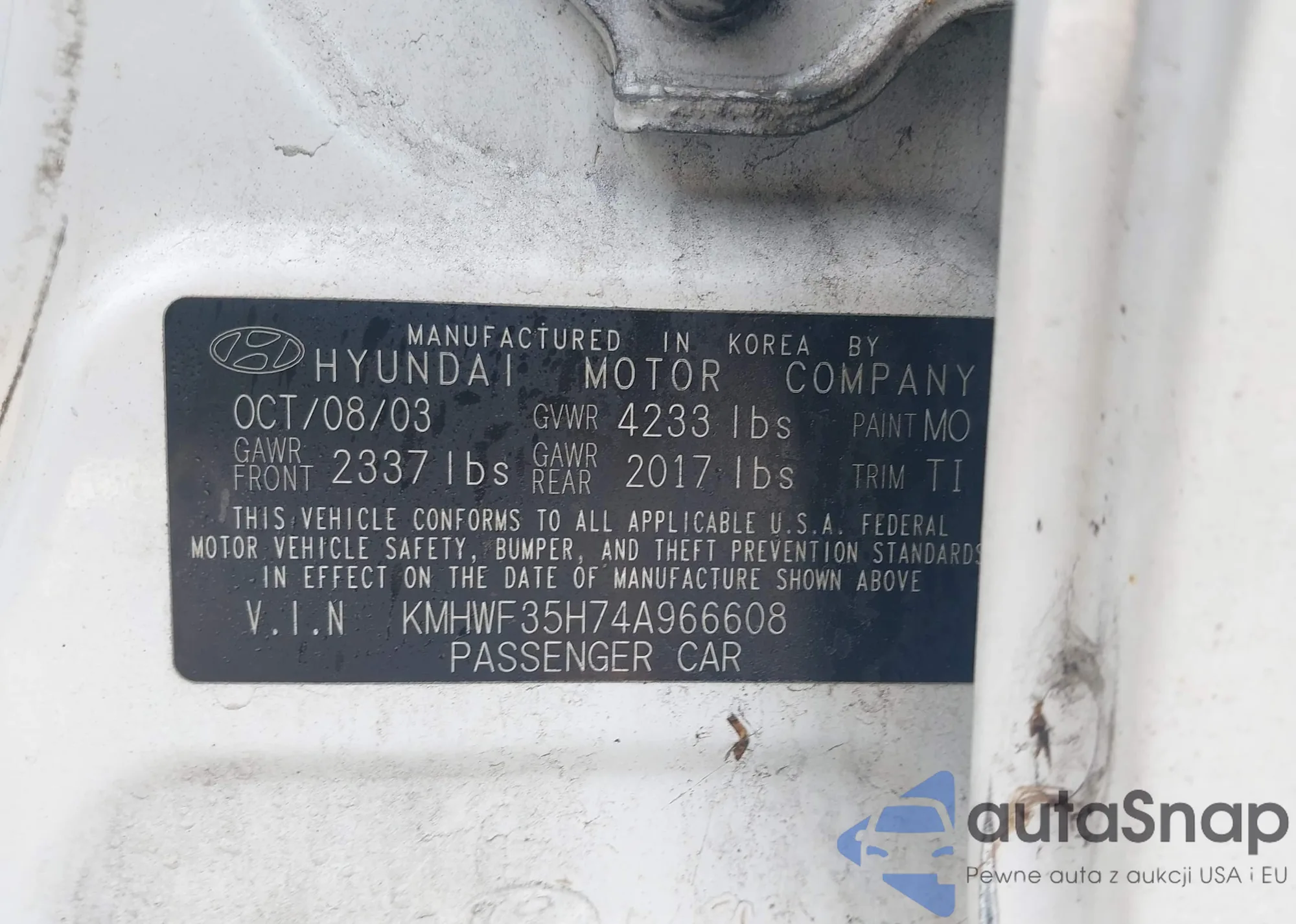 LOT: 44111332 VIN: KMHWF35H74A966608