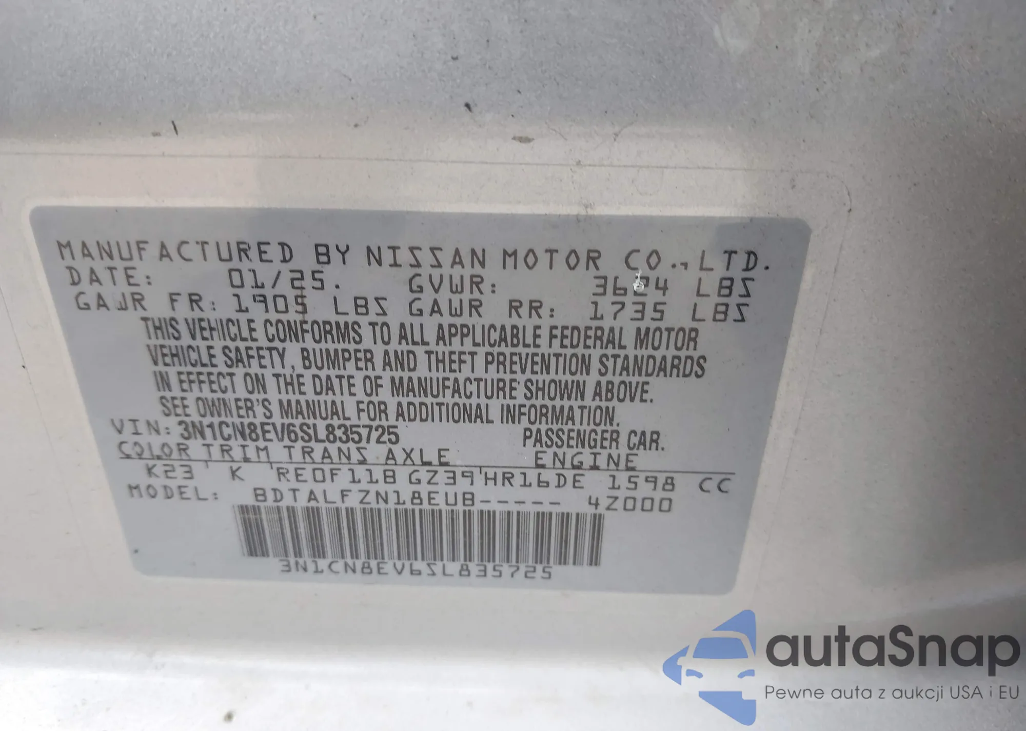 • VIN 3N1CN8EV6SL835725