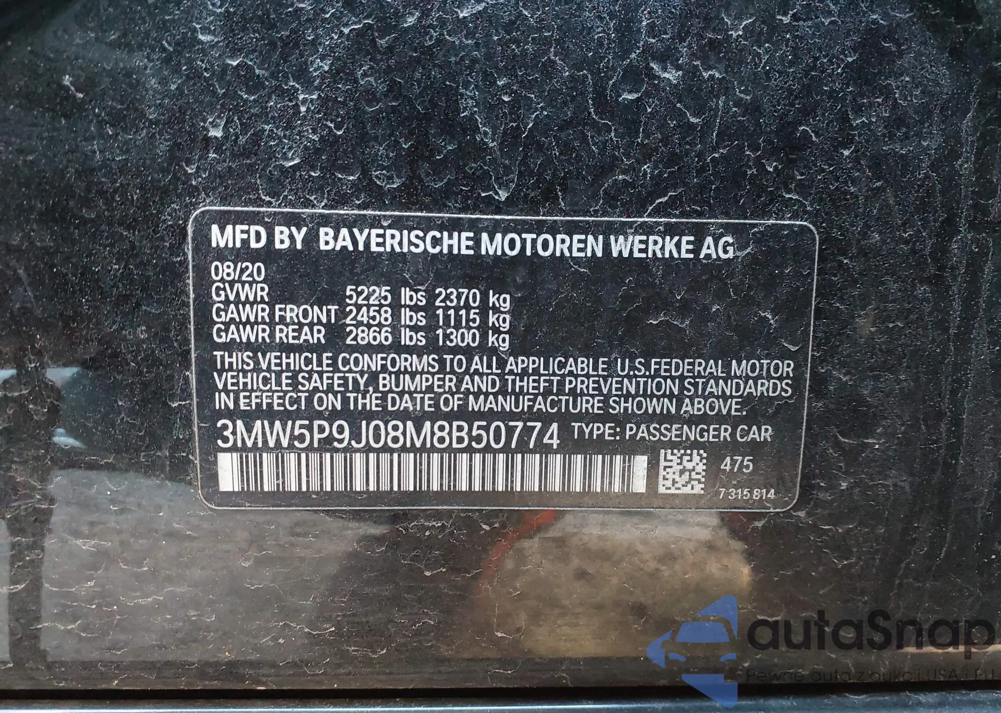 • VIN WMWMF73559TW85430