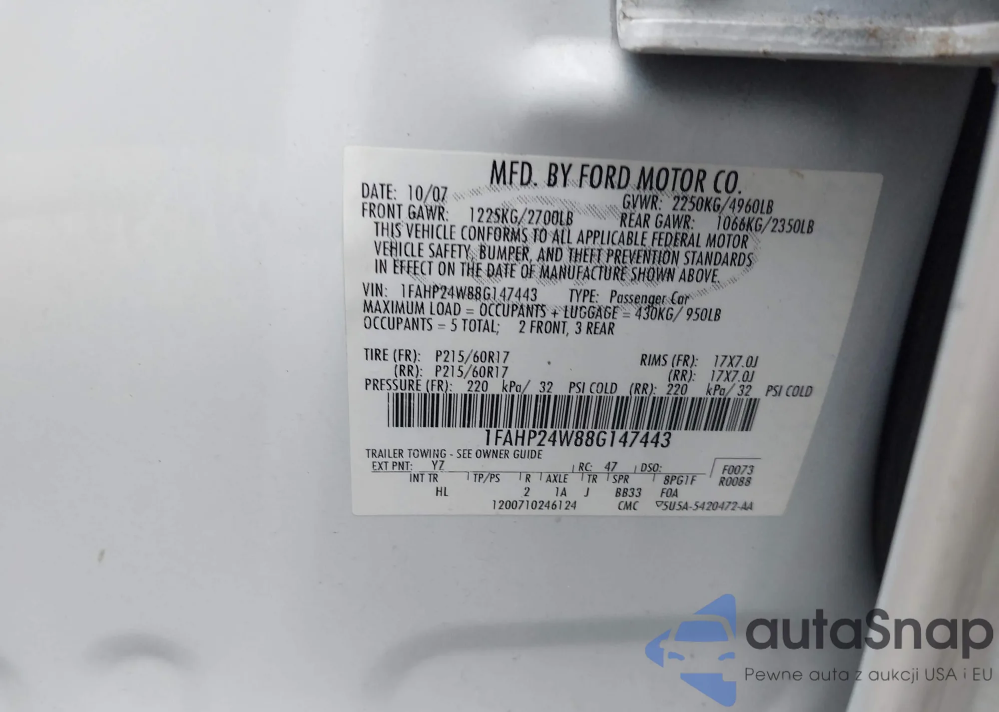 • VIN 1FAHP24W88G147443