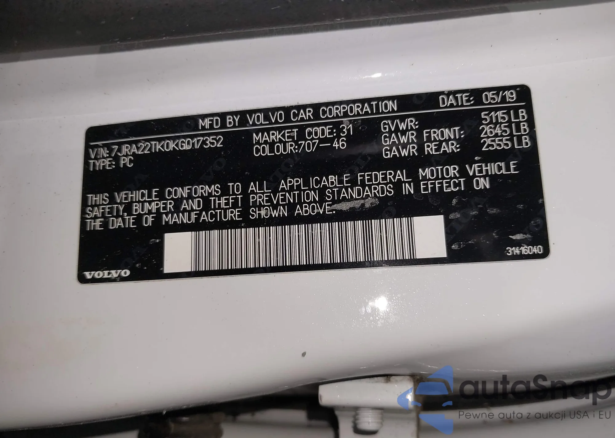 • VIN 7JRA22TK0KG017352