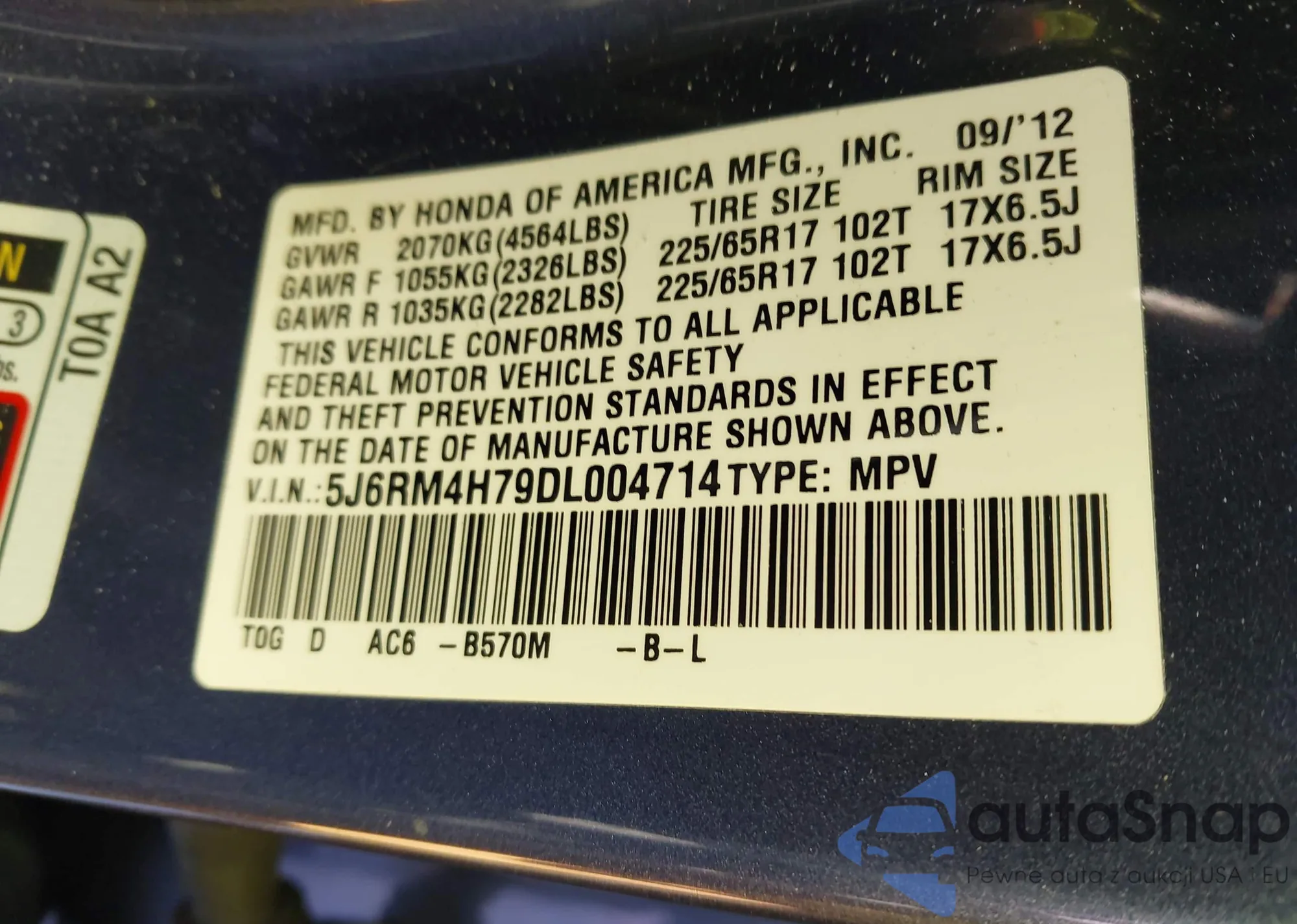 • VIN 5FNYF8H50LB009156