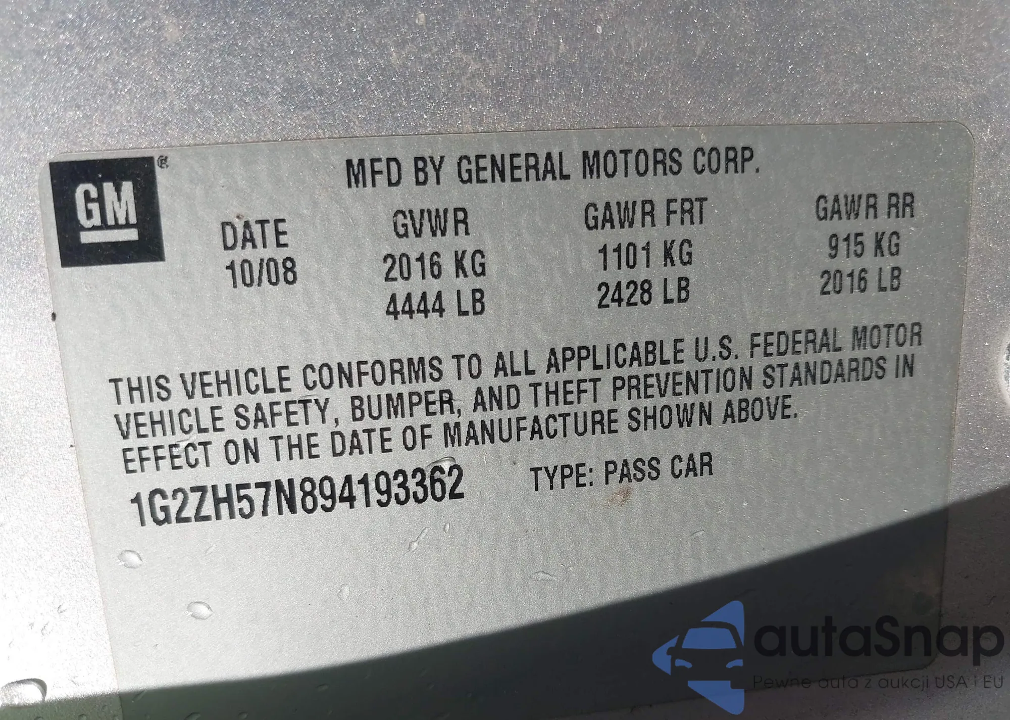 LOT: 44007055 VIN: 1G2ZH57N894193362