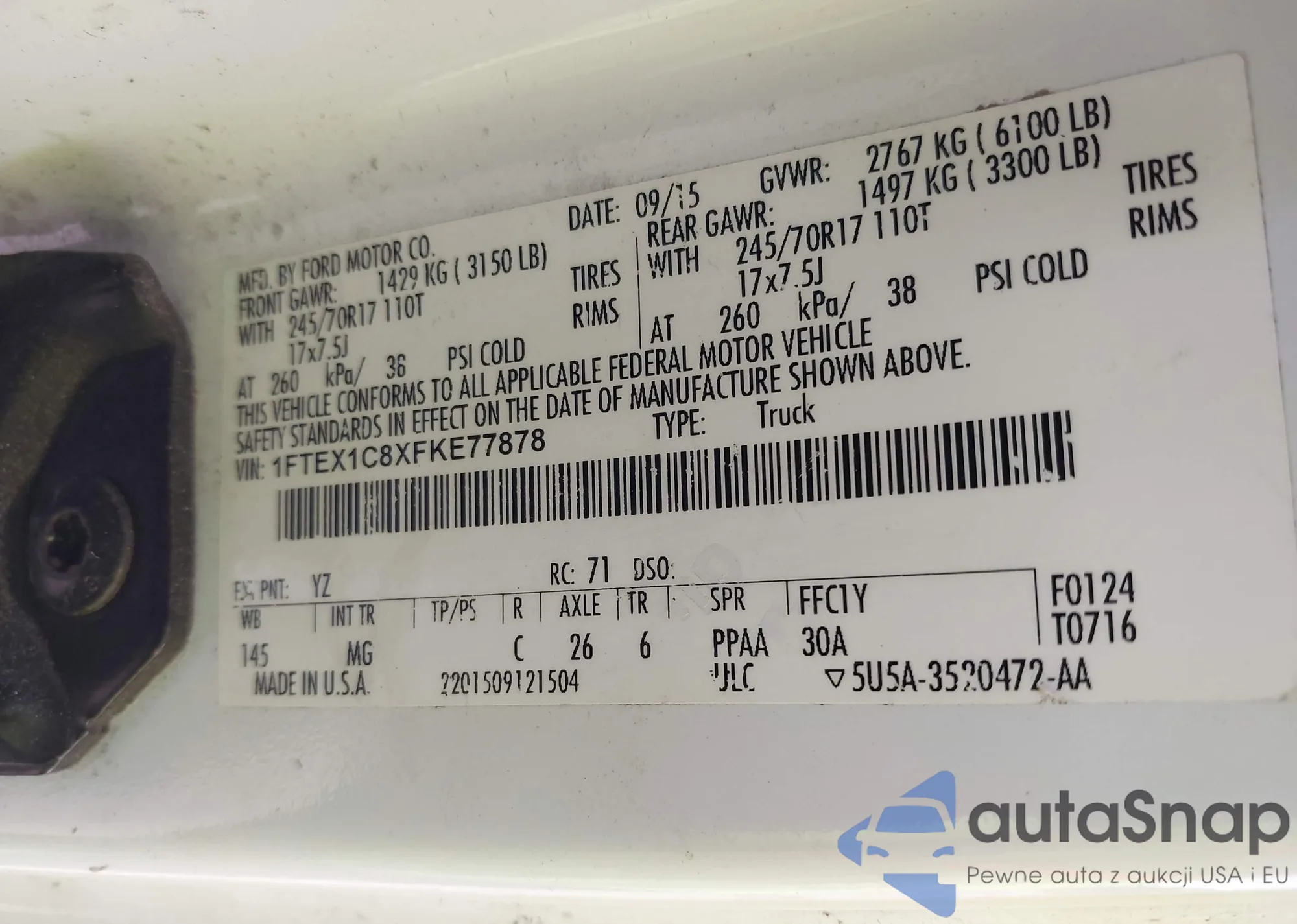 LOT: 43932385 VIN: 1FA6P0HD0F5102221