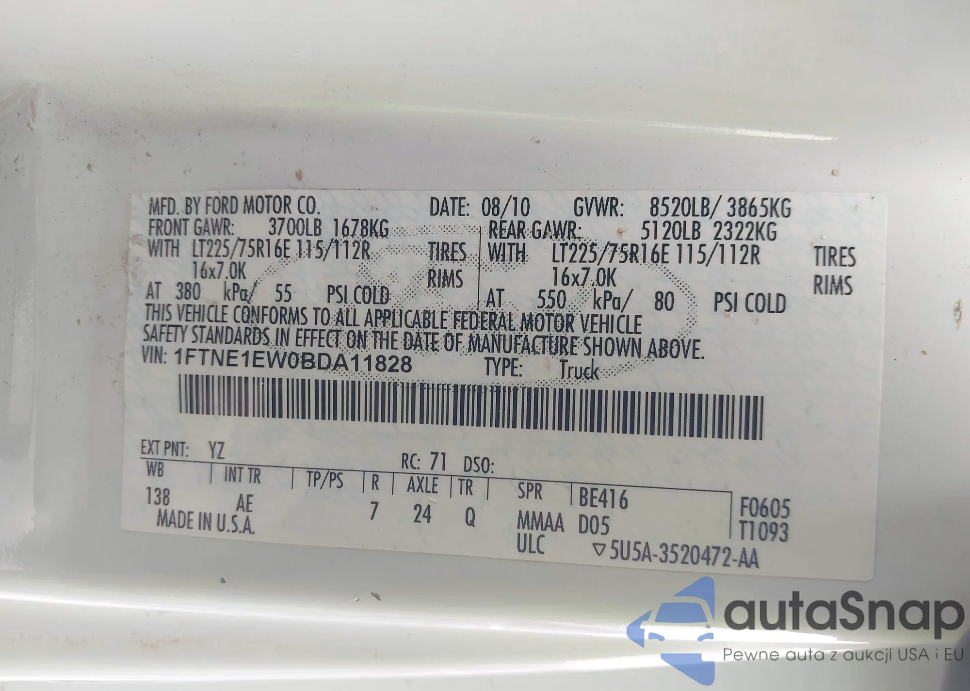• VIN 1FTNE1EW0BDA11828