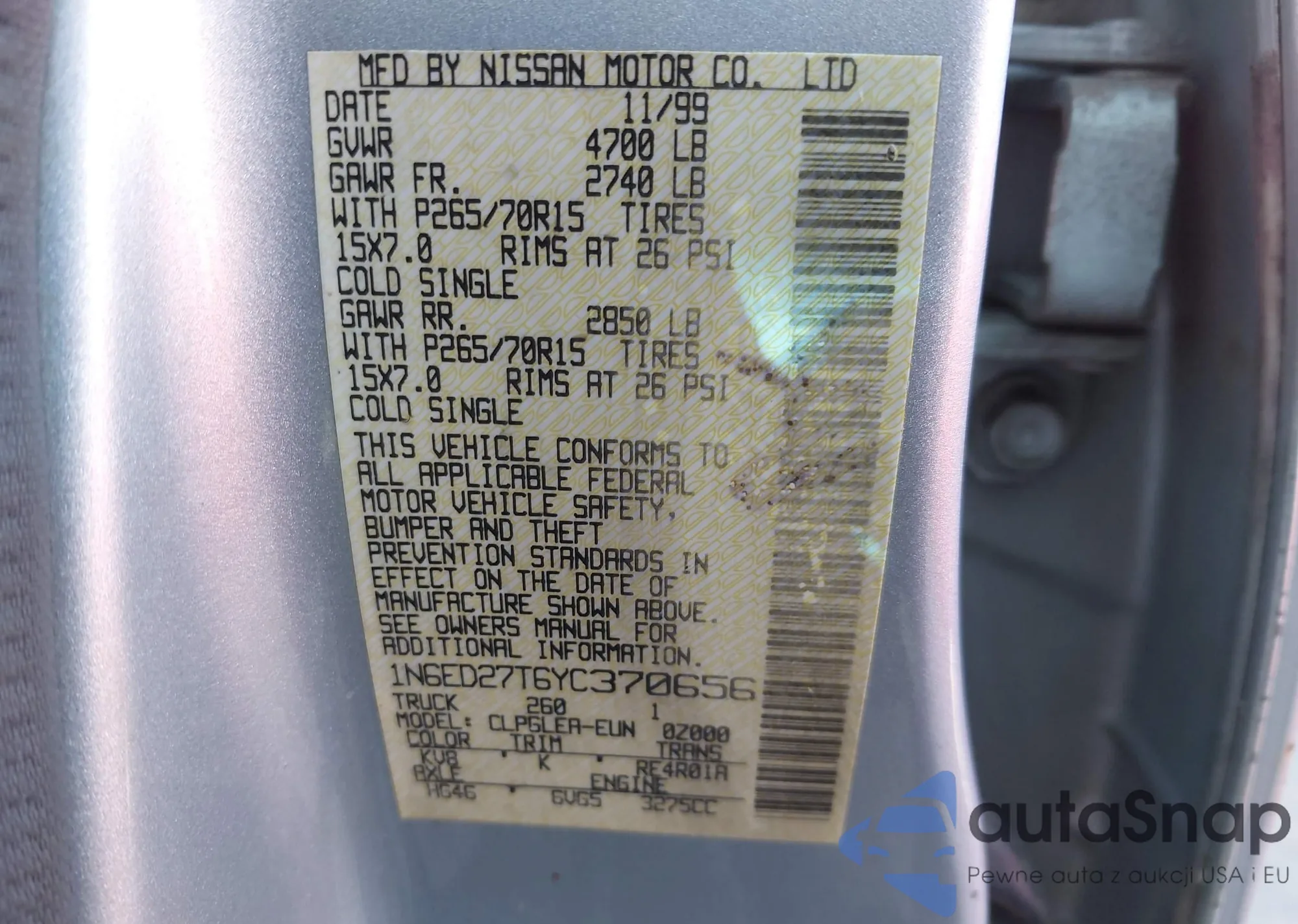 LOT: 43956334 VIN: JTEDW21A560011826