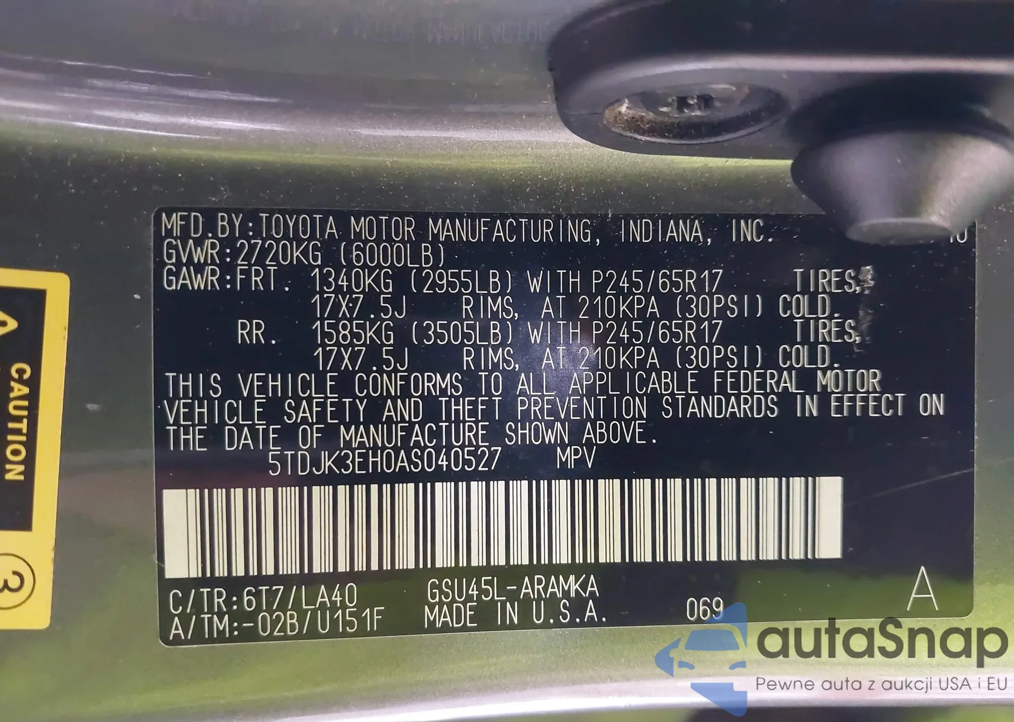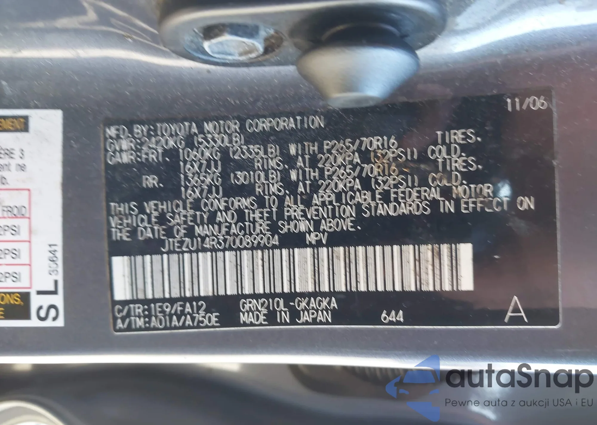 LOT: 43953335 VIN: JTEZU14R370089904