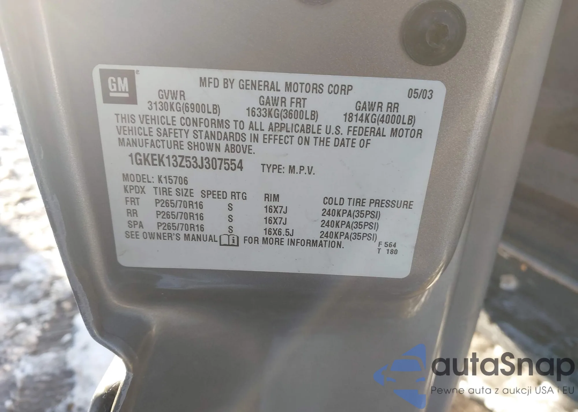 • VIN 3KPFT4DE3SE111229