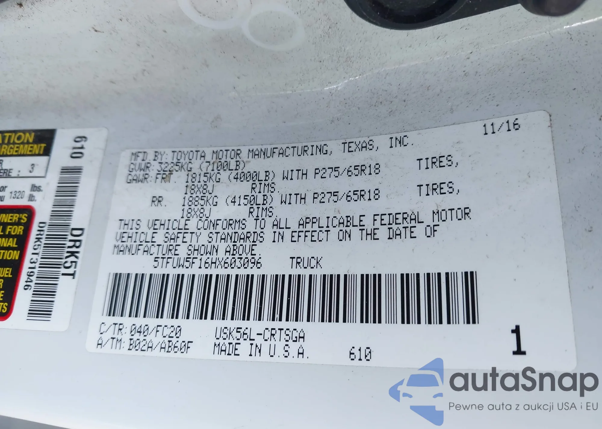 • VIN 5TFUW5F16HX603096