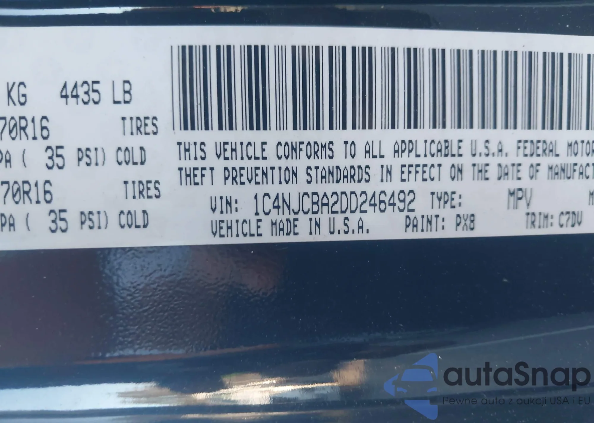 • VIN 1C4NJCBA2DD246492