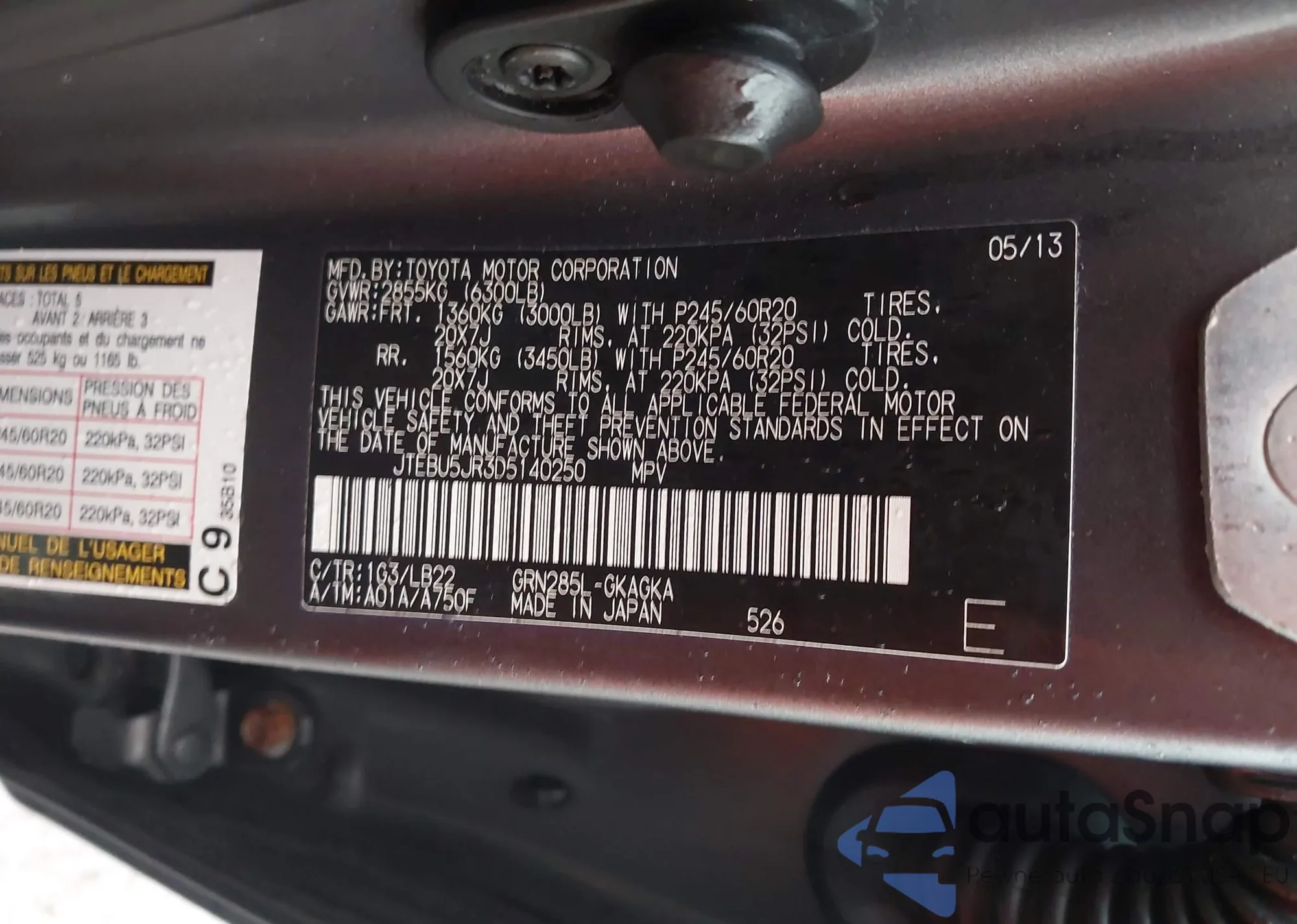 LOT: 43971652 VIN: JTEBU5JR3D5140250