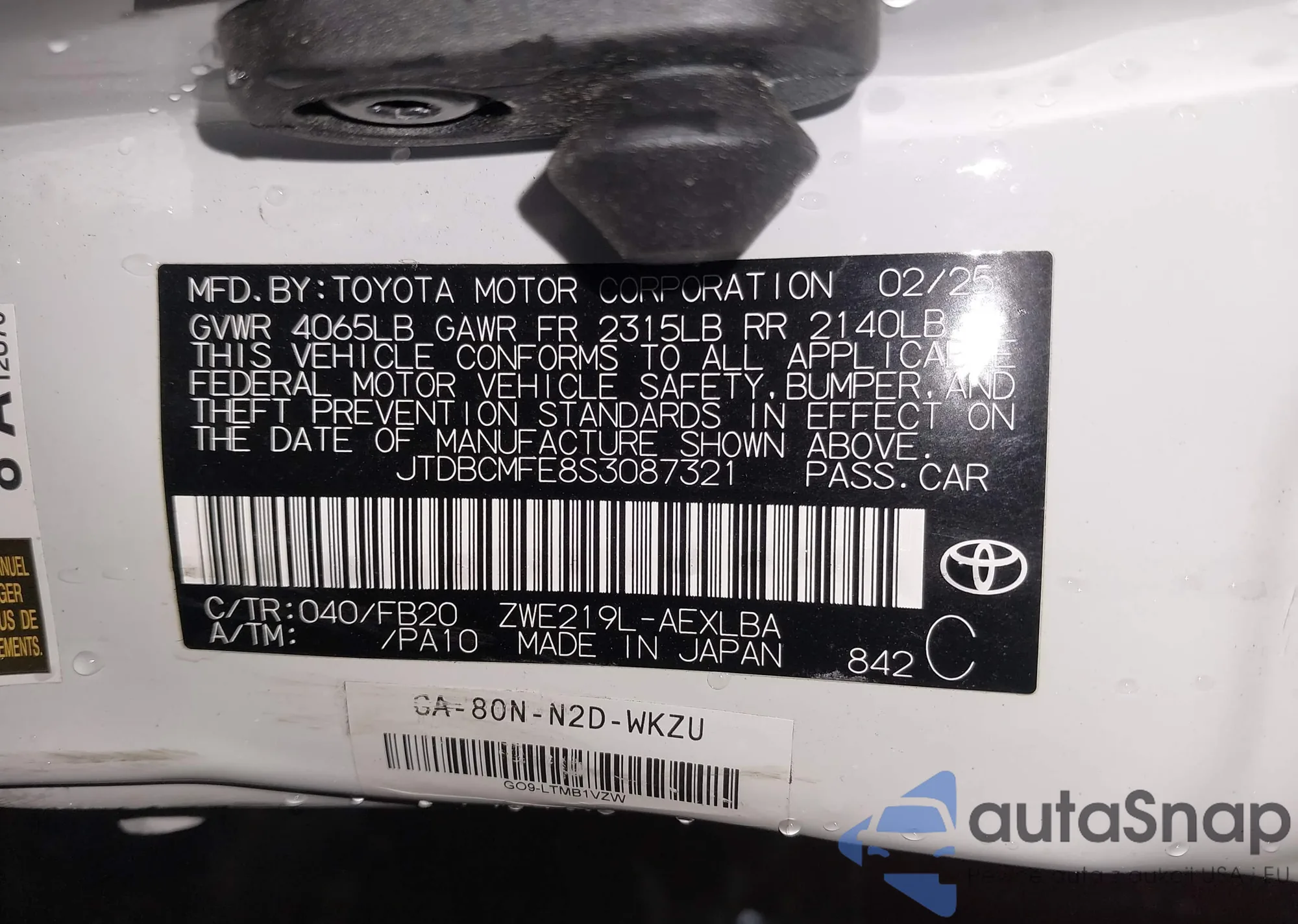 • VIN JTDBCMFE8S3087321