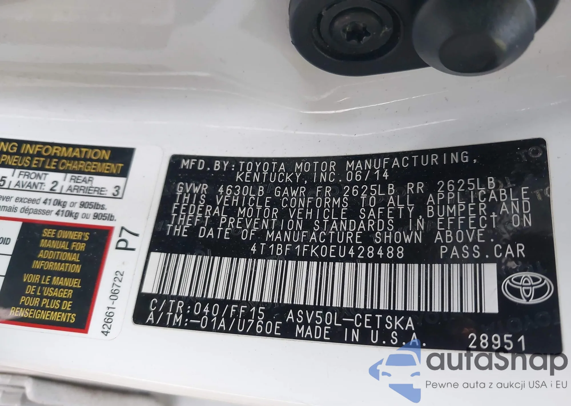 • VIN 4T1BF1FK0EU428488