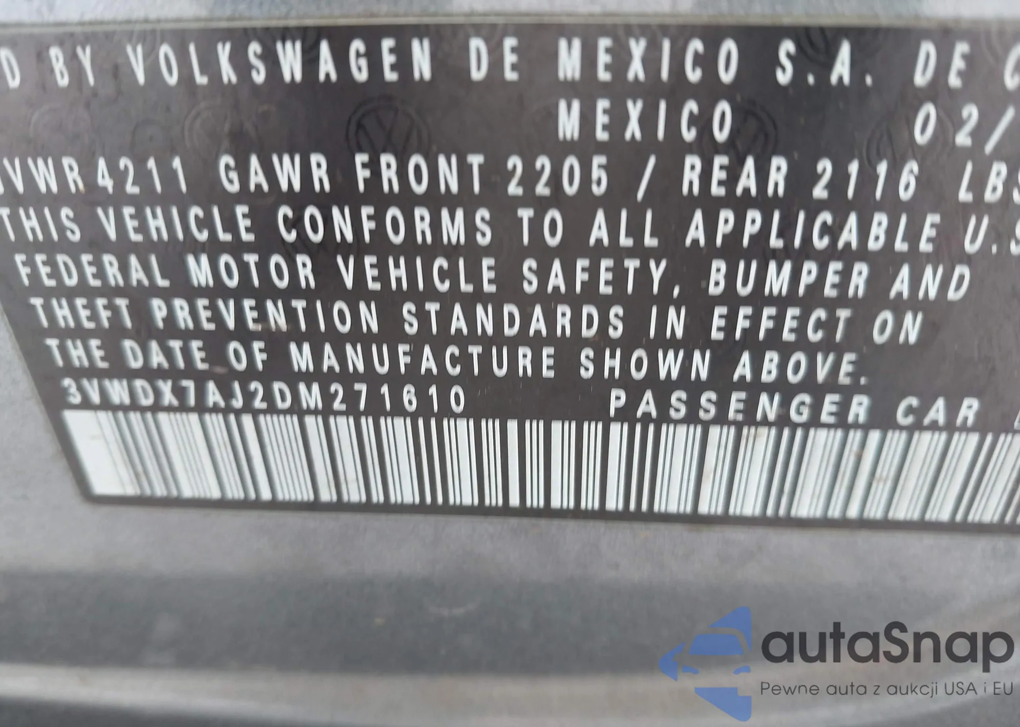 • VIN 3VWDX7AJ2DM271610