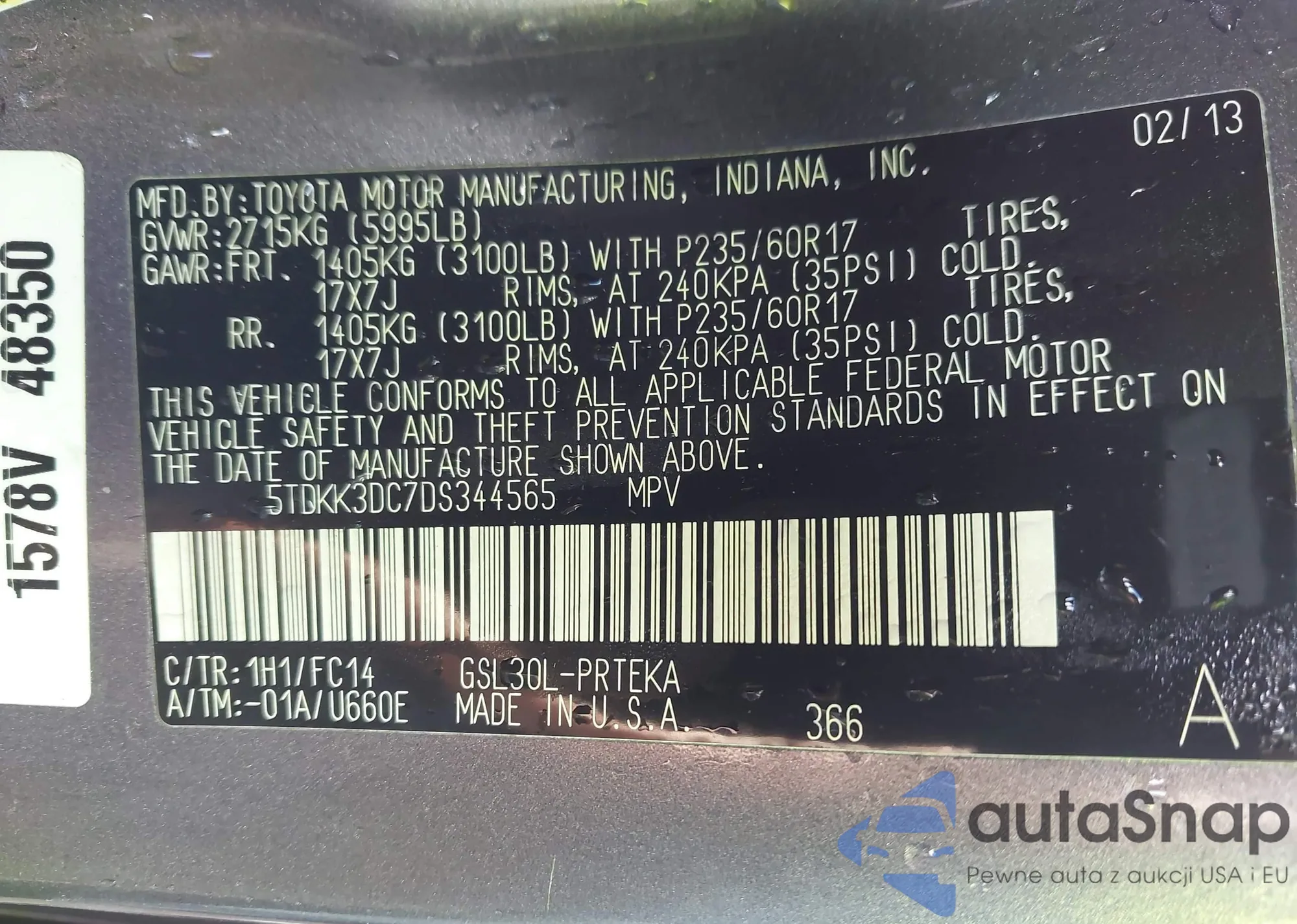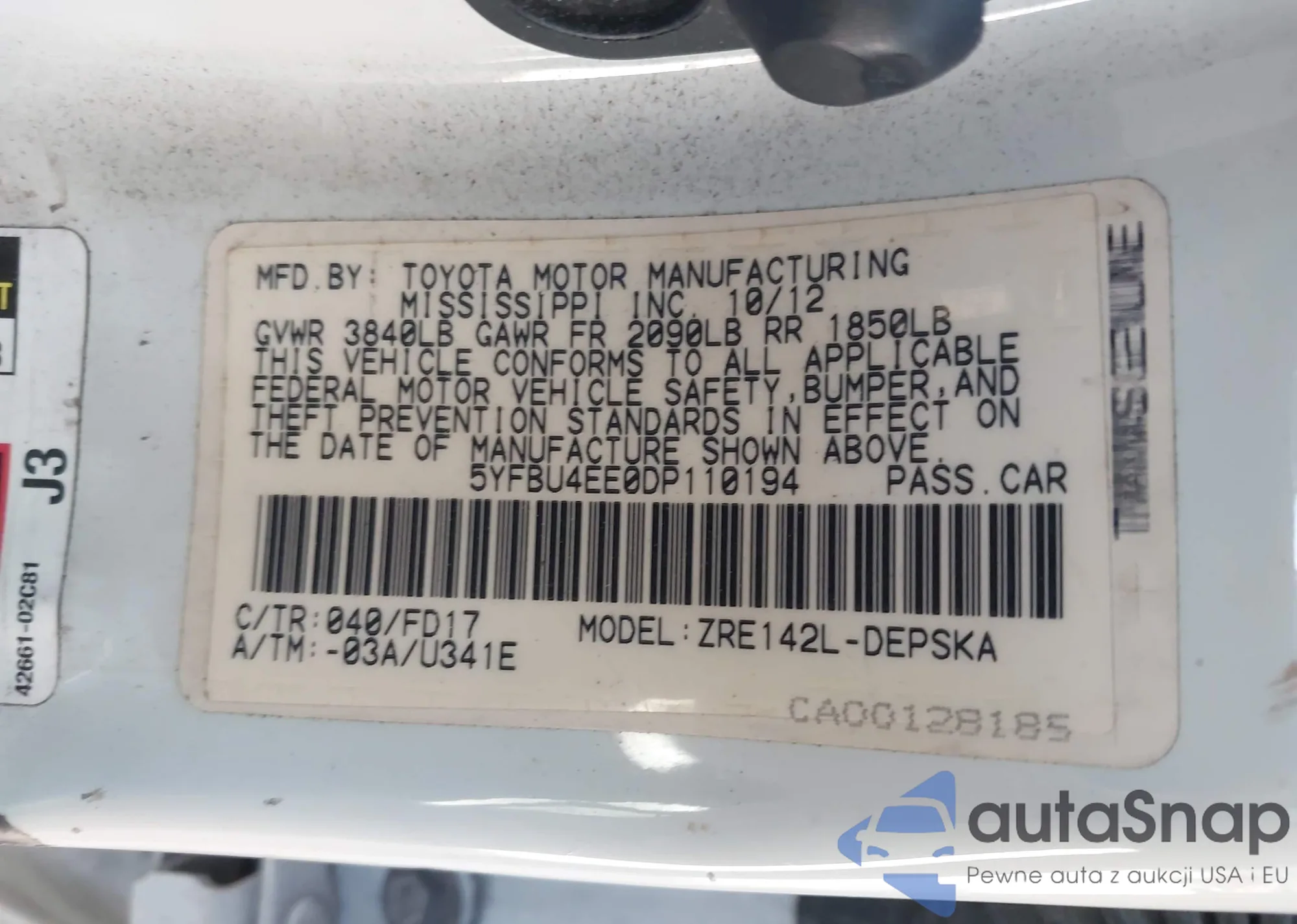 LOT: 43978885 VIN: 5YFBU4EE0DP110194