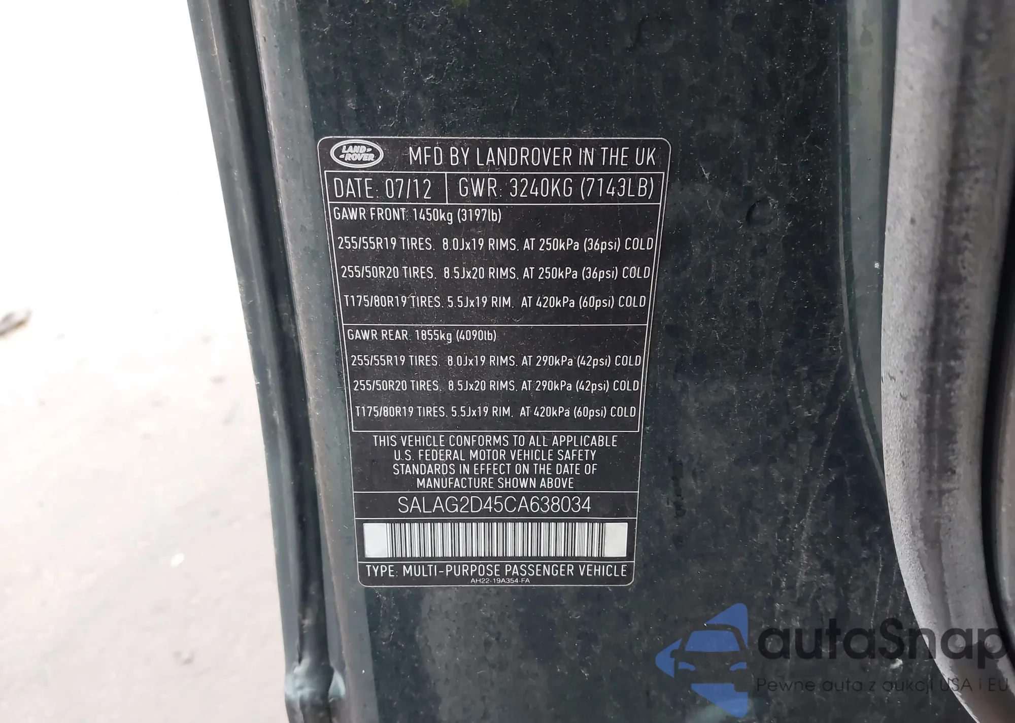 LOT: 44027624 VIN: SALAG2D45CA638034