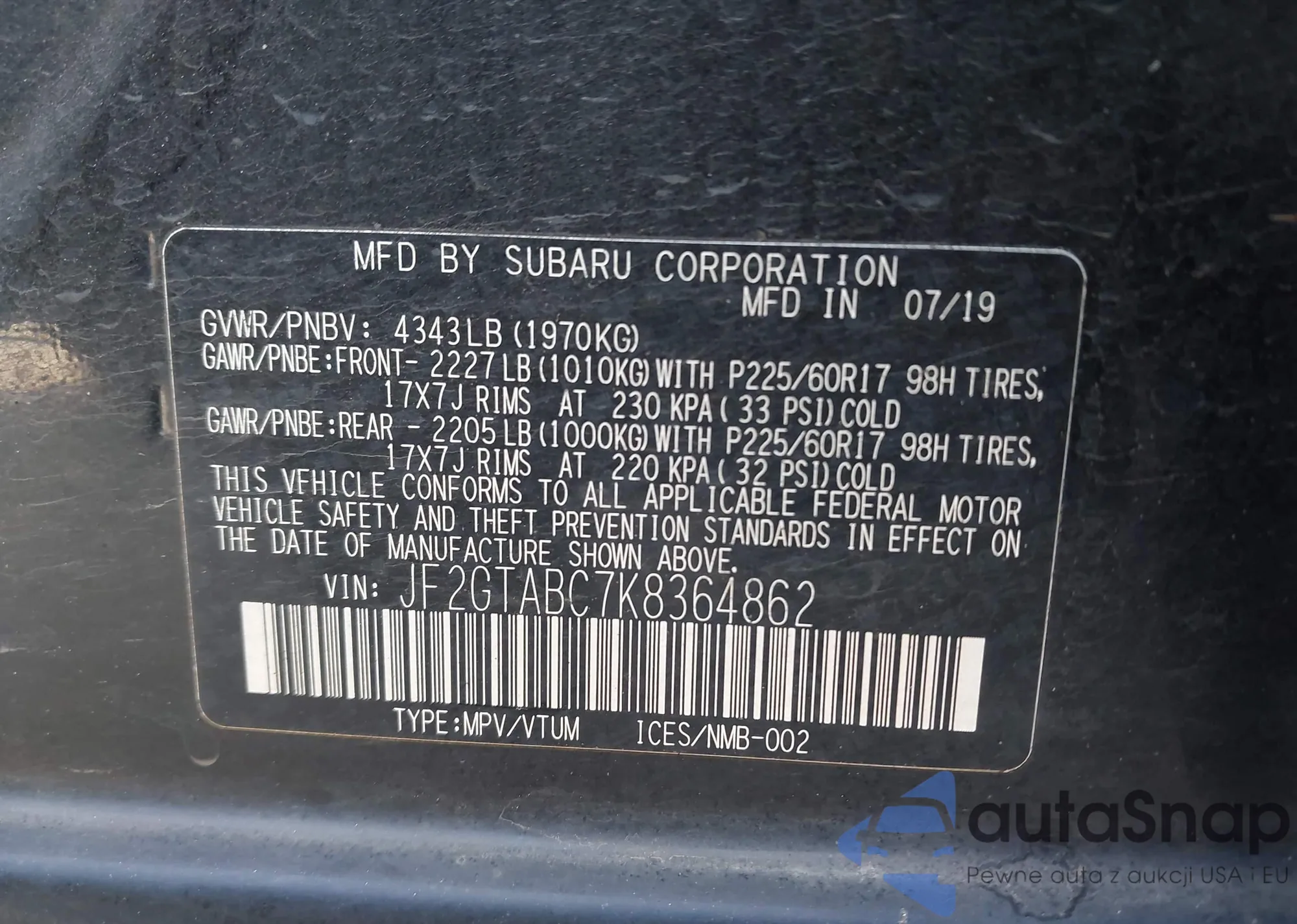 • VIN JF2GTABC7K8364862