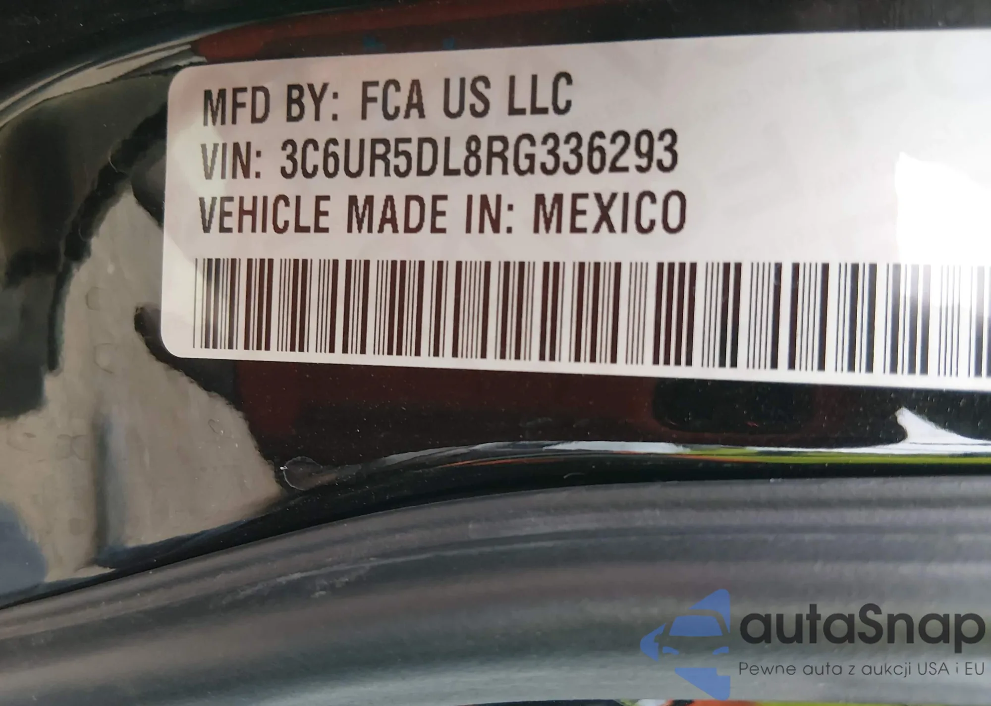 • VIN 3C6UR5DL8RG336293