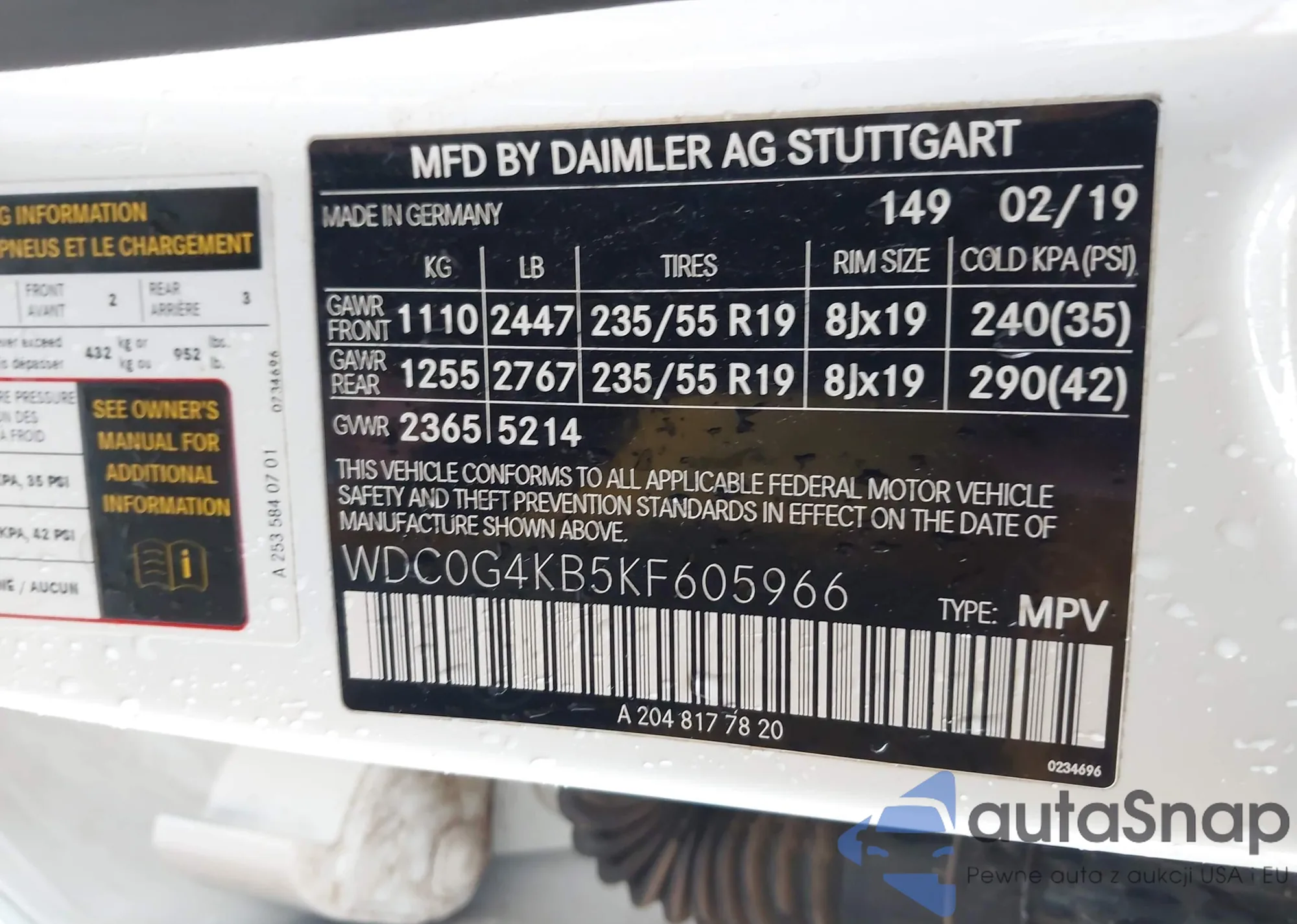 • VIN WDC0G4KB5KF605966