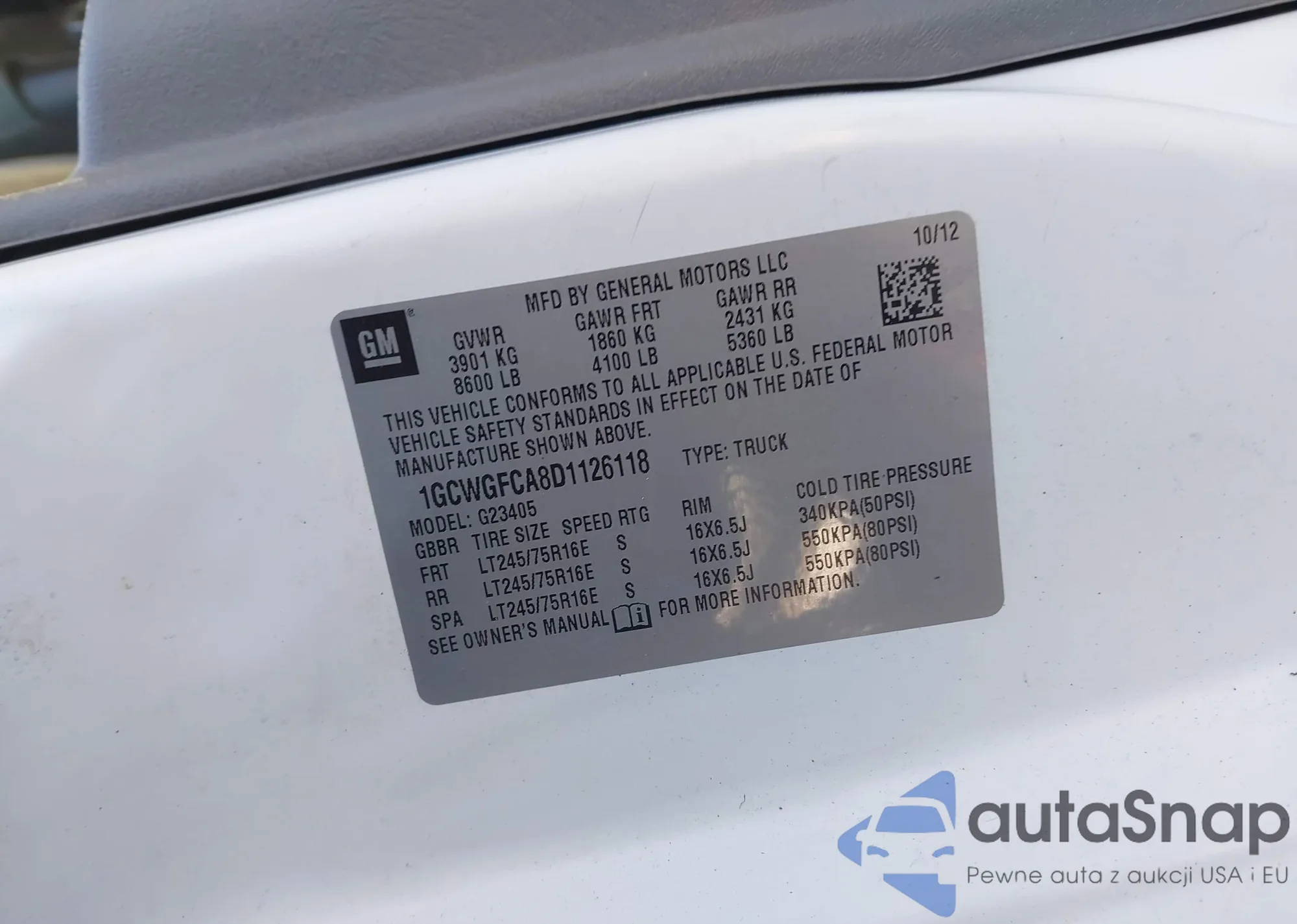 LOT: 43967841 VIN: 1GCWGFCA8D1126118
