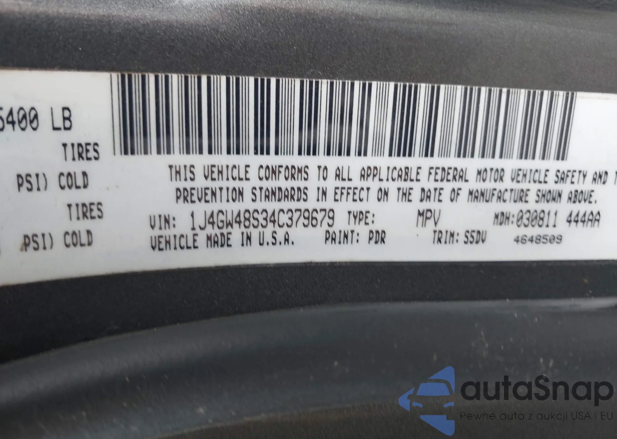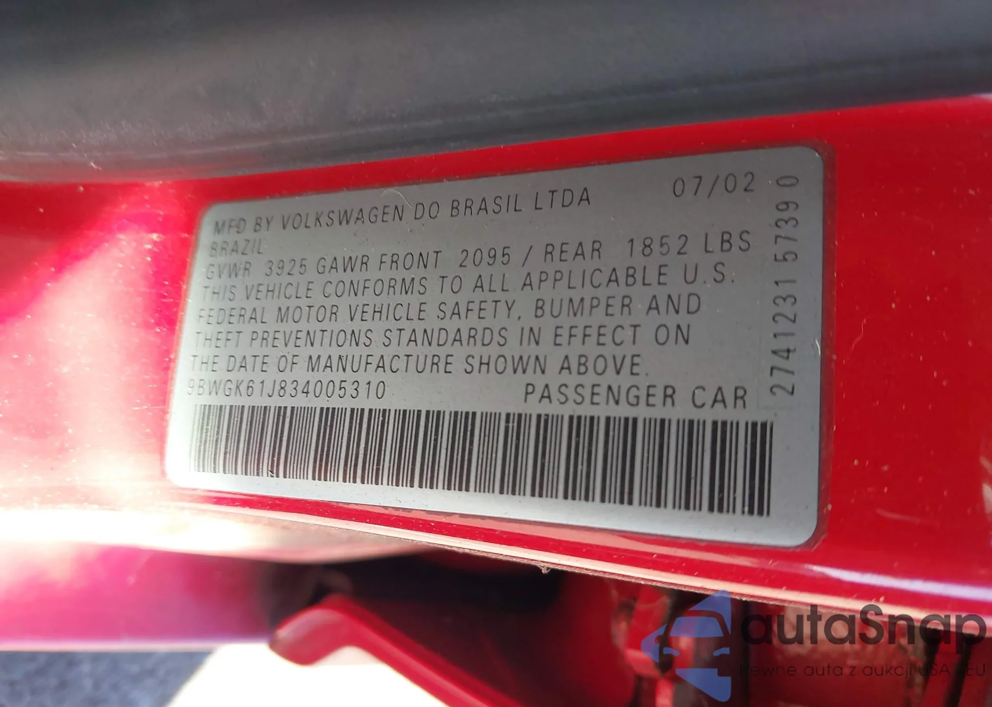 LOT: 43820970 VIN: 9BWGK61J834005310