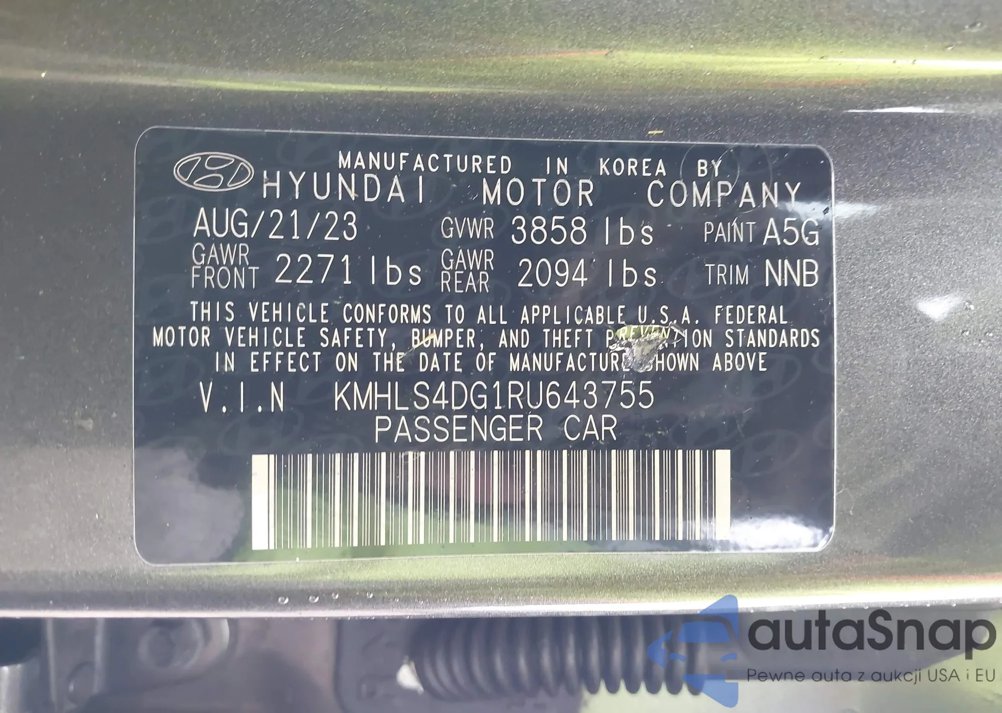 • VIN KMHLS4DG1RU643755