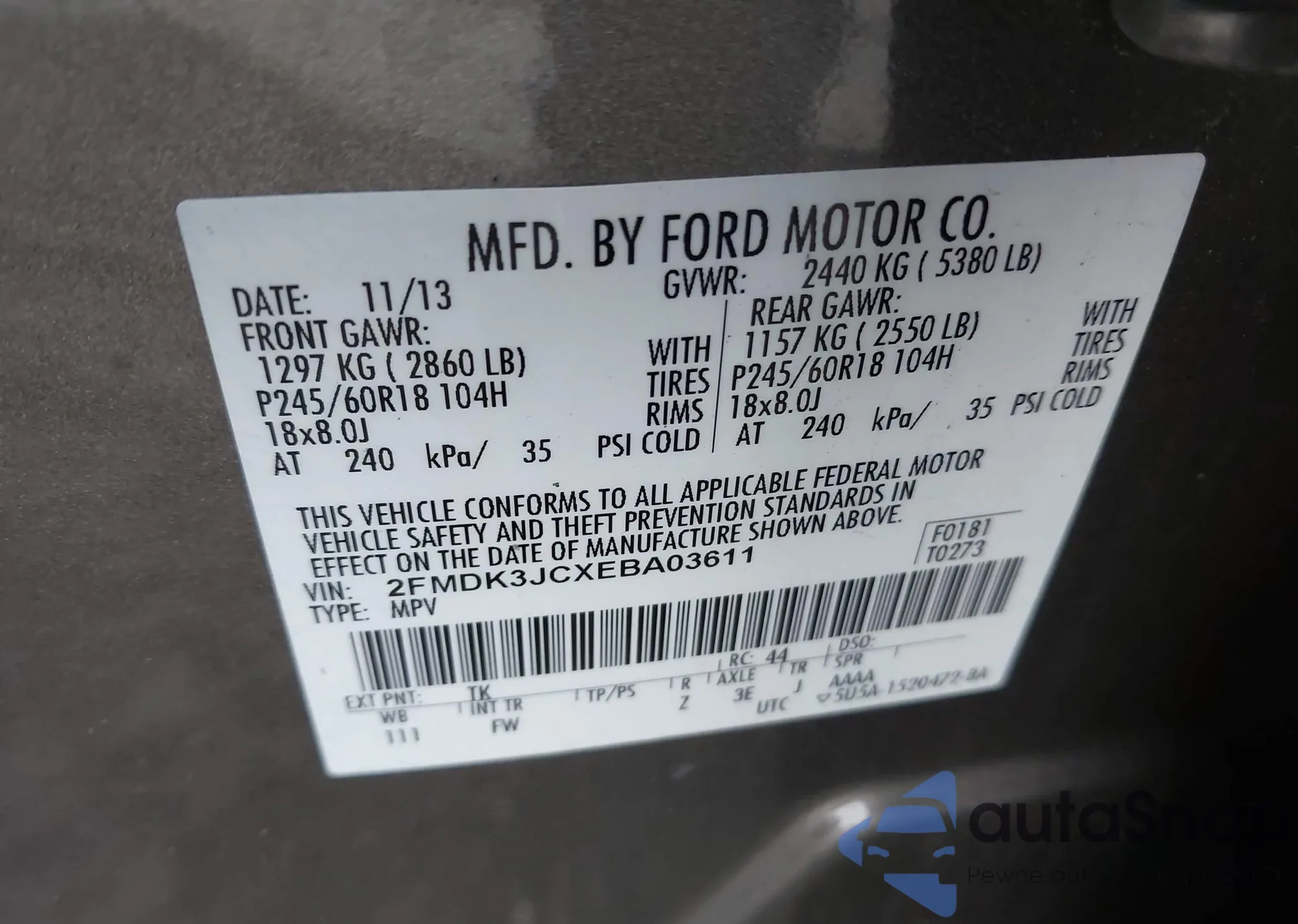LOT: 44028086 VIN: 1ZVBP8CF4D5206687