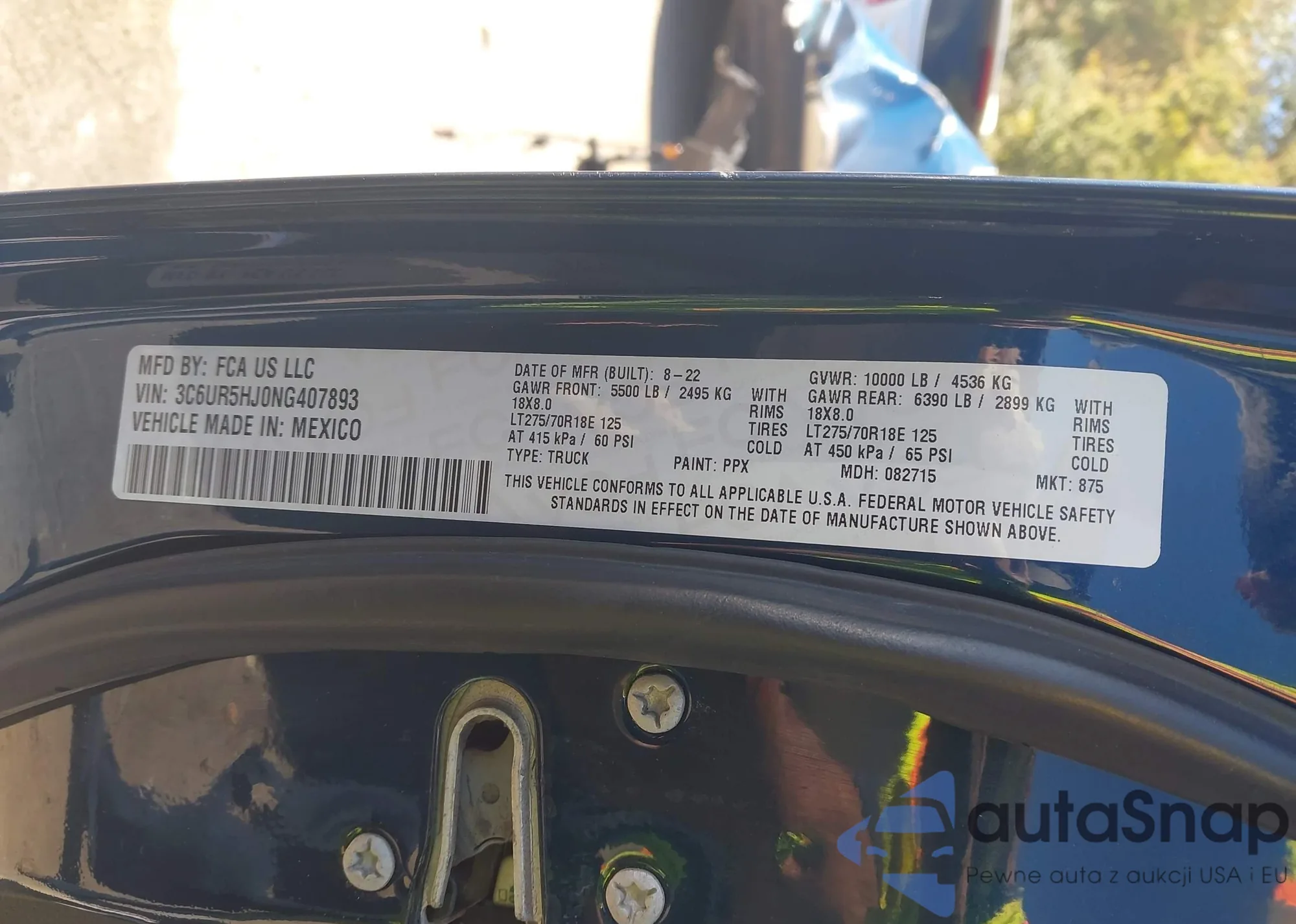 • VIN 3C6UR5HJ0NG407893
