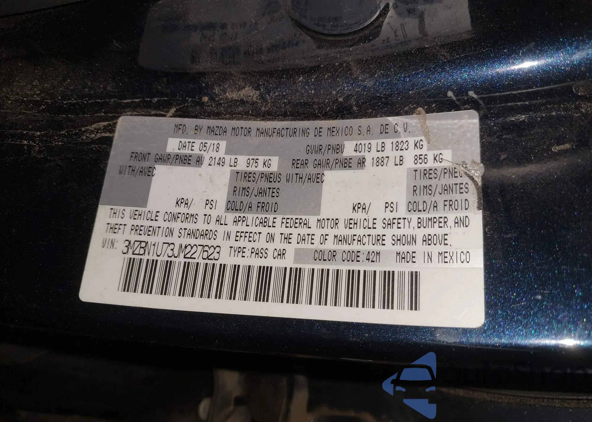 LOT: 41977459 VIN: 3MZBN1U73JM227623