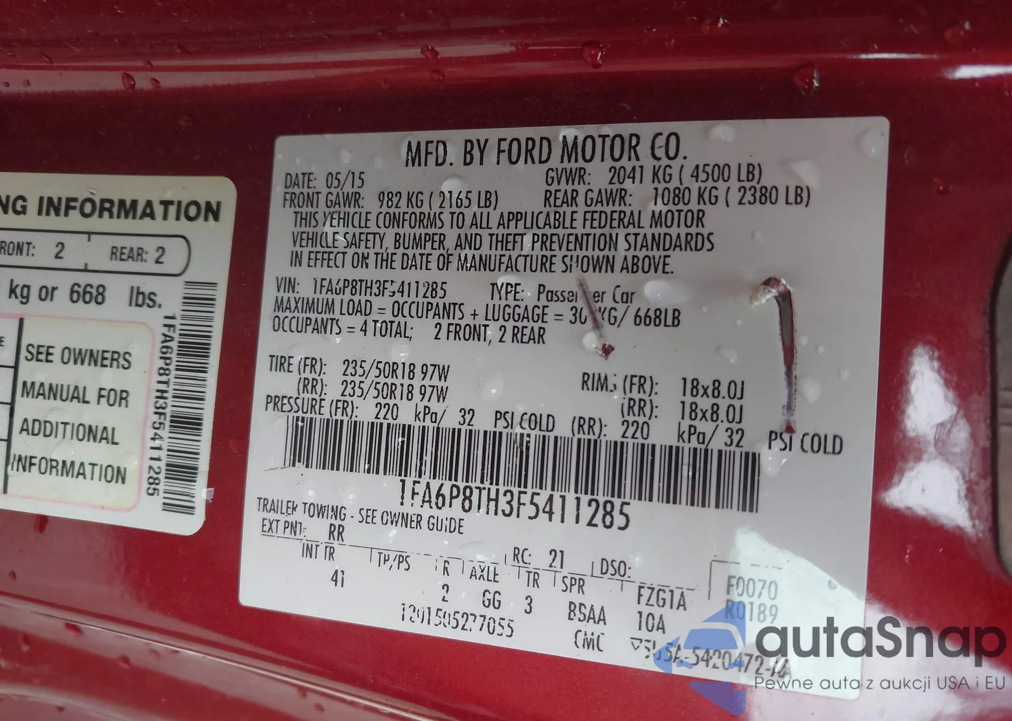 • VIN 1FA6P8TH3F5411285