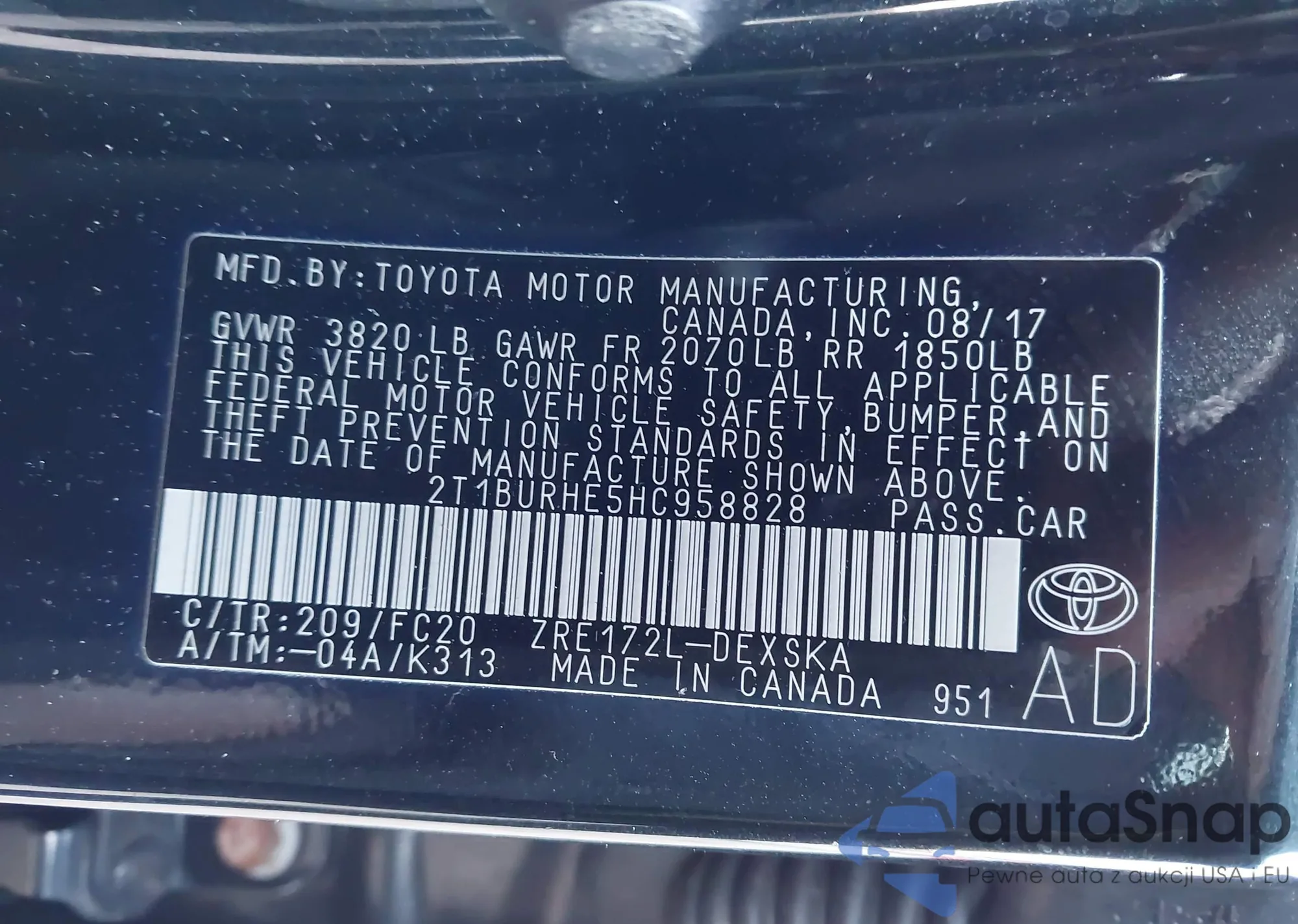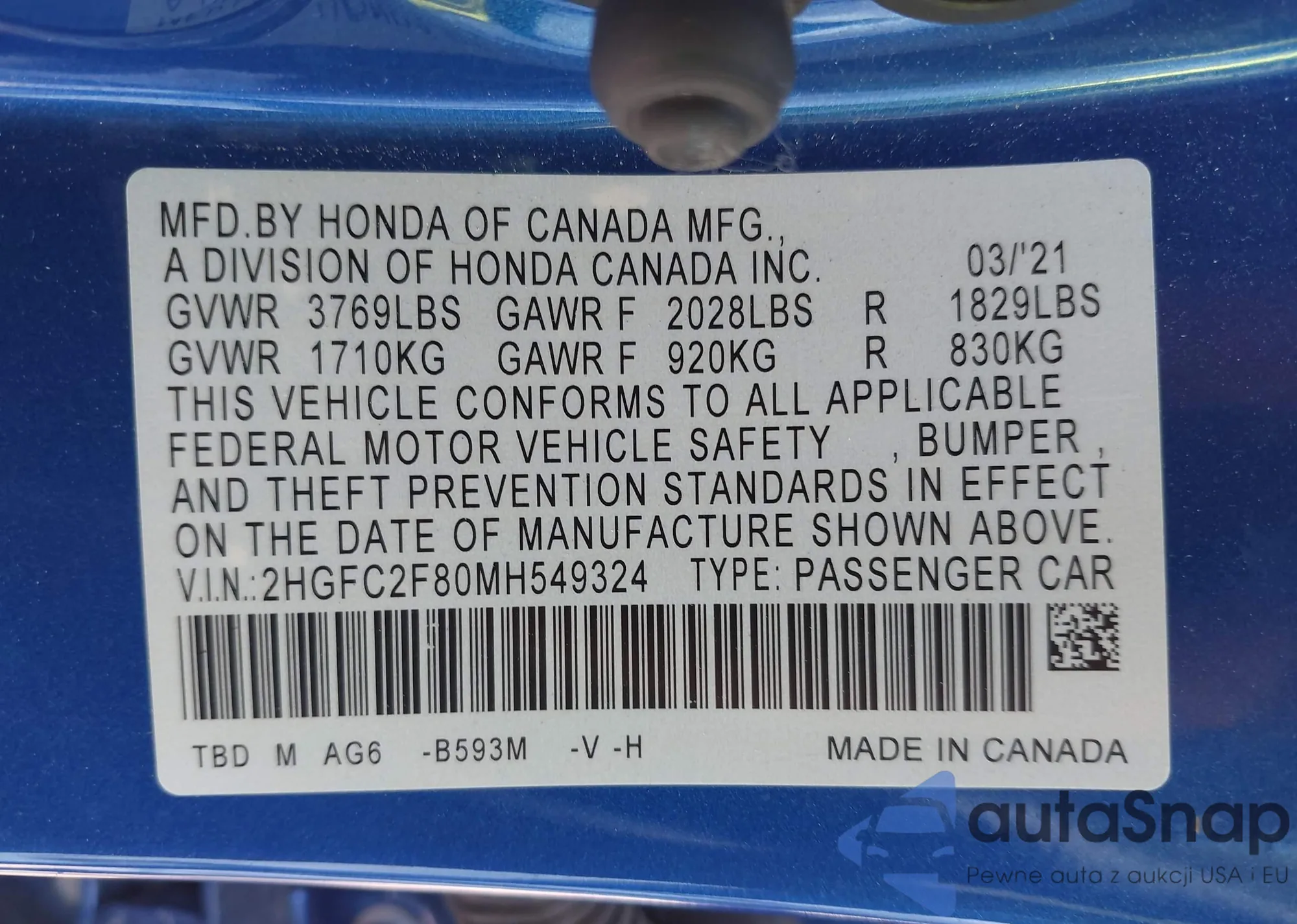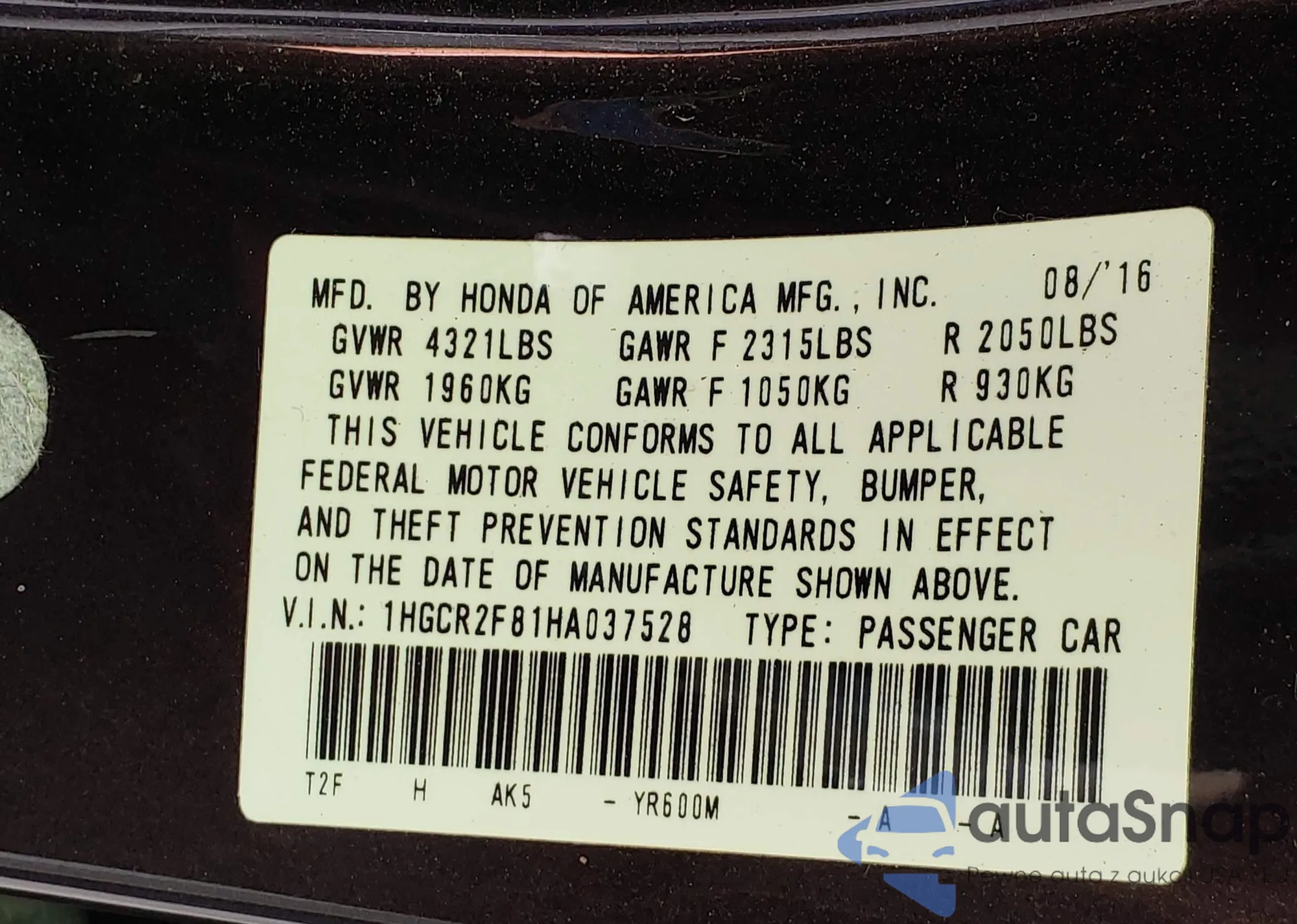 • VIN 1HGCR2F81HA037528
