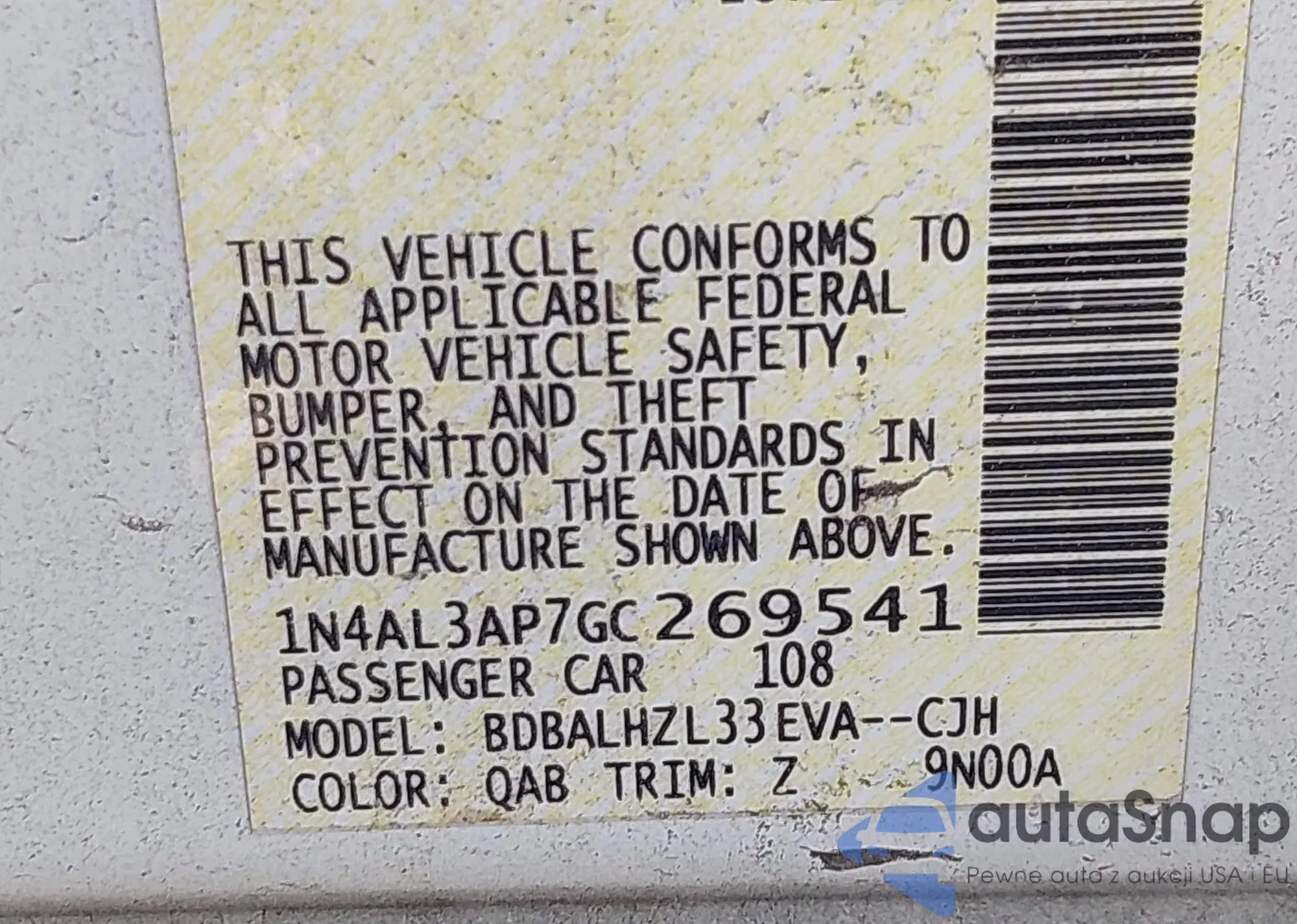 • VIN 1N4AL3AP7GC269541