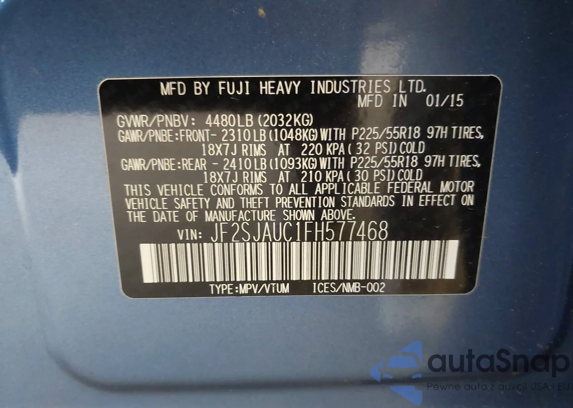 • VIN JF2SJAUC1FH577468
