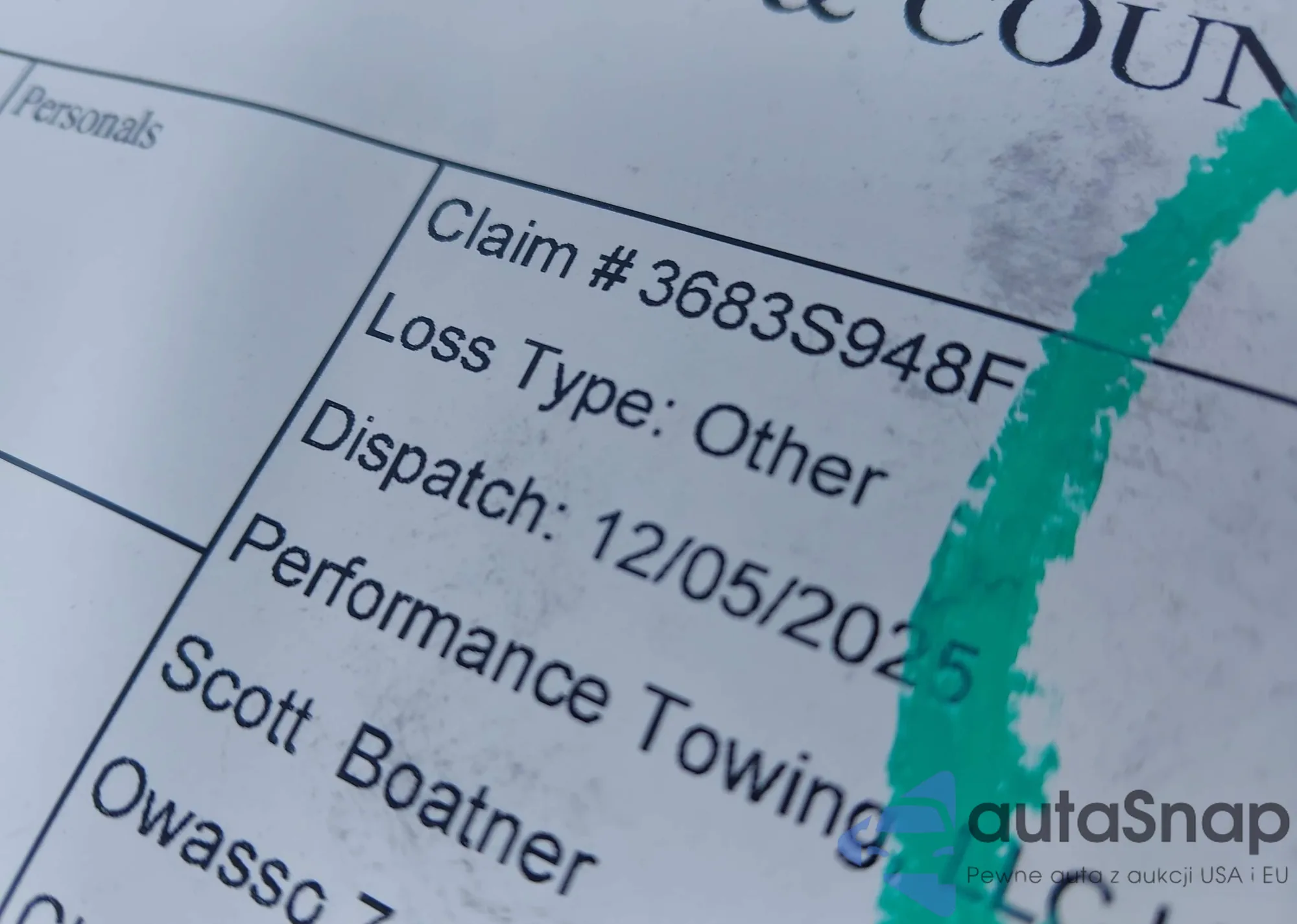 • Uszkodzenia: Uszkodzony w całości