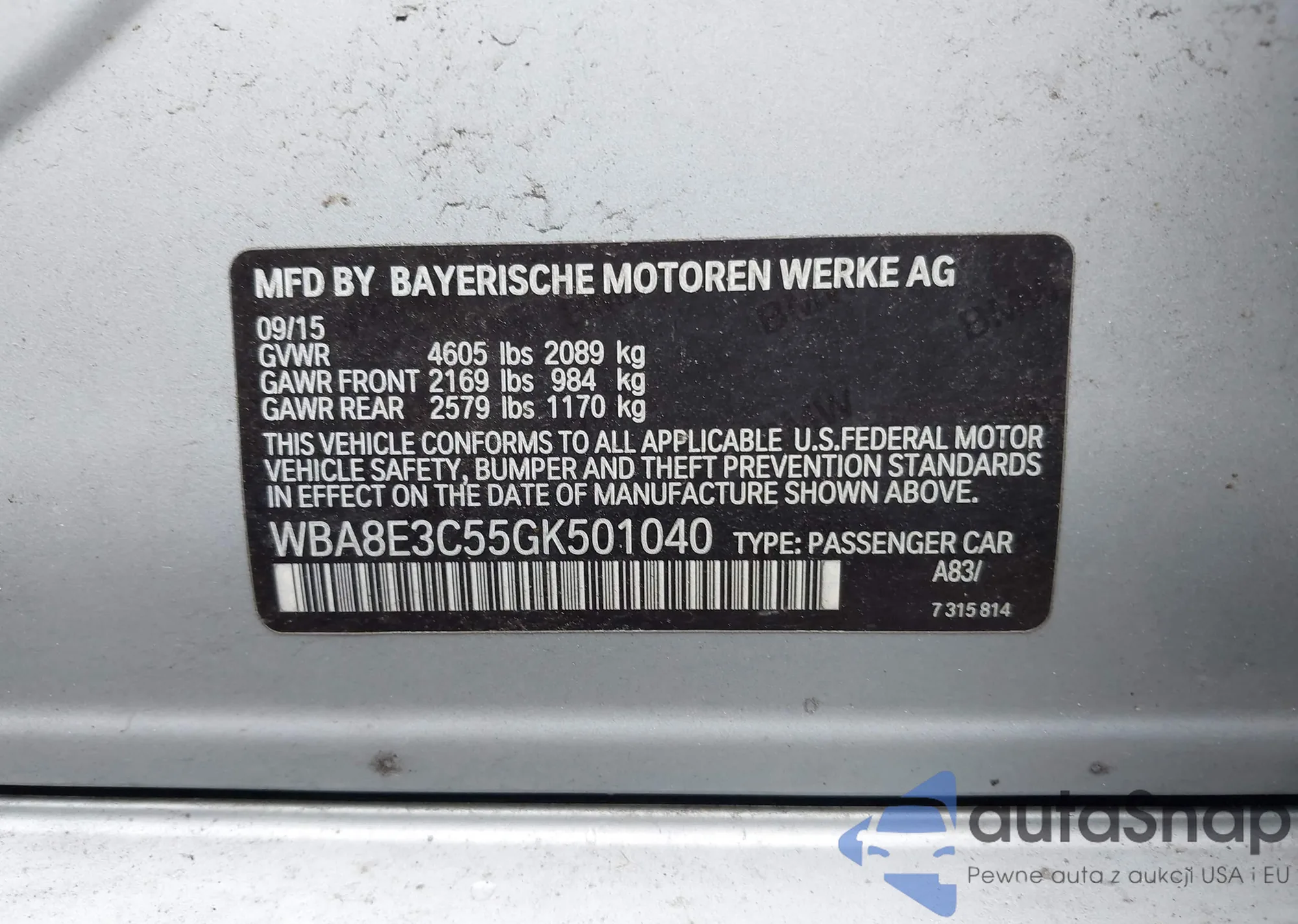 • VIN WBA8E3C55GK501040