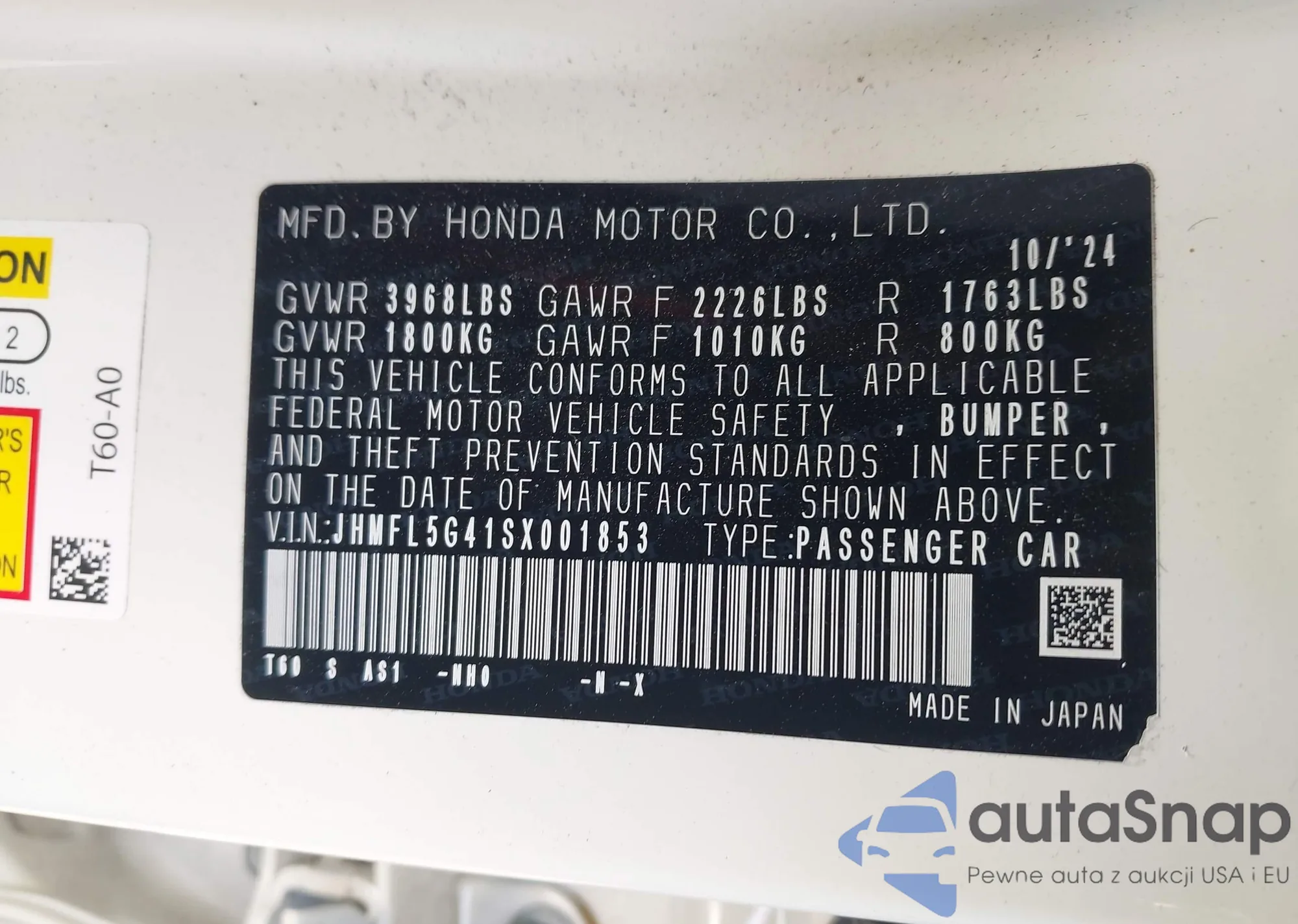 • VIN JHMFL5G41SX001853