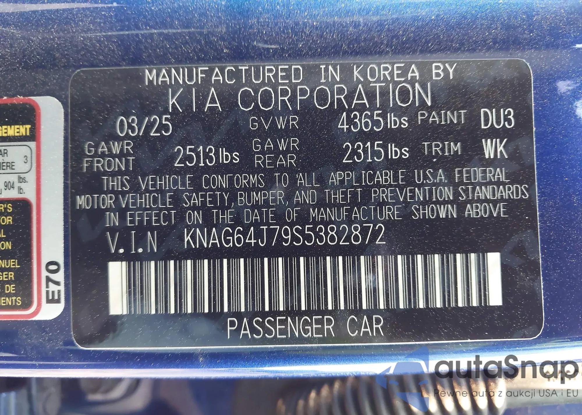 • VIN KNAG64J79S5382872