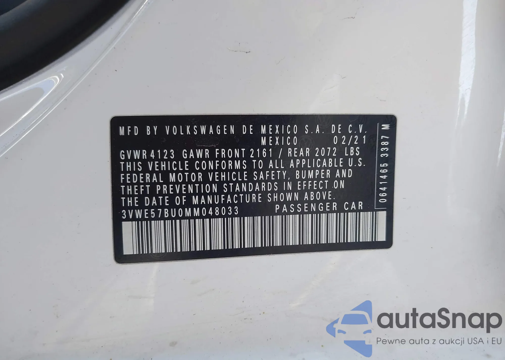 • VIN 3VWE57BU0MM048033