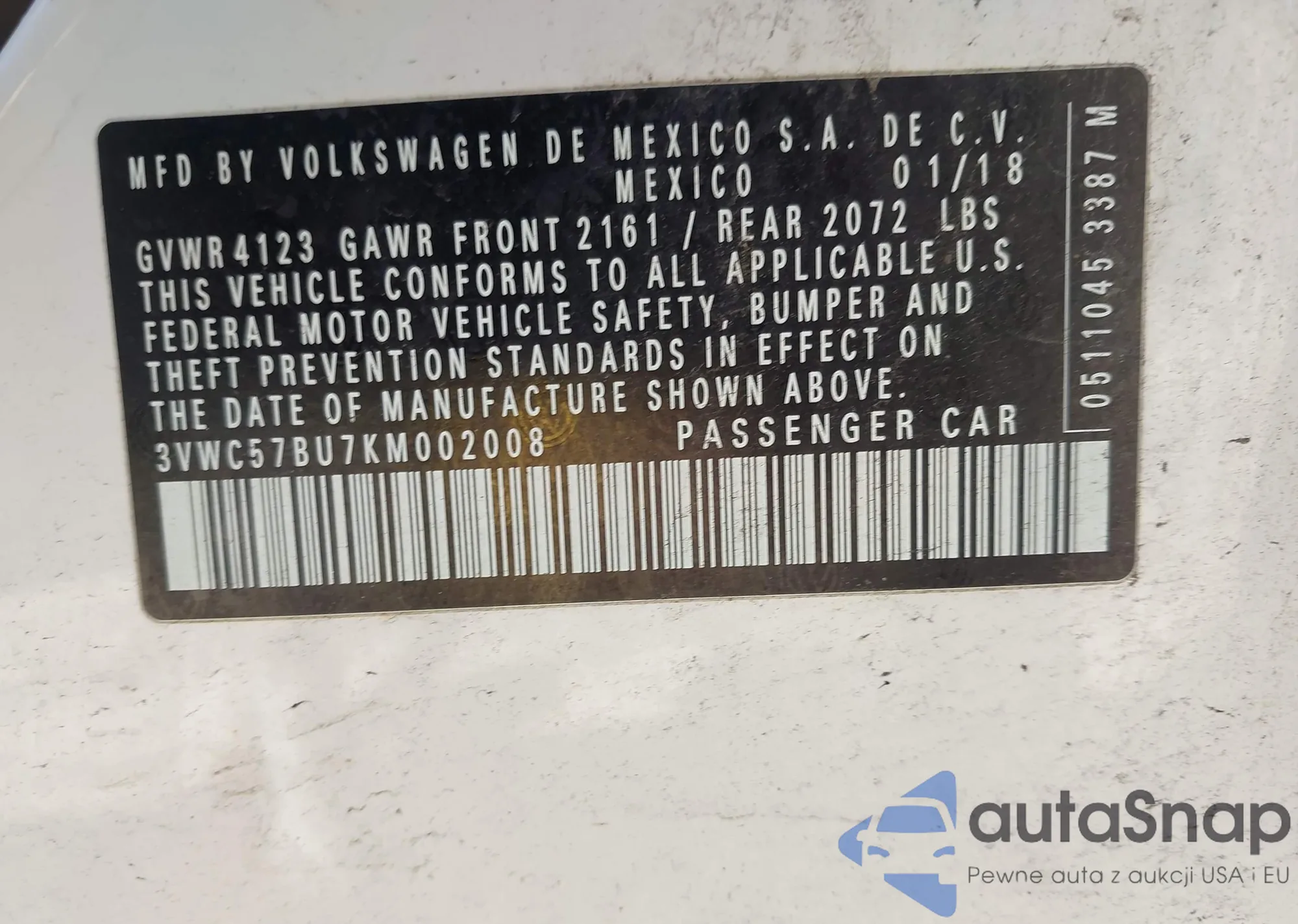 • VIN 3VWC57BU7KM002008